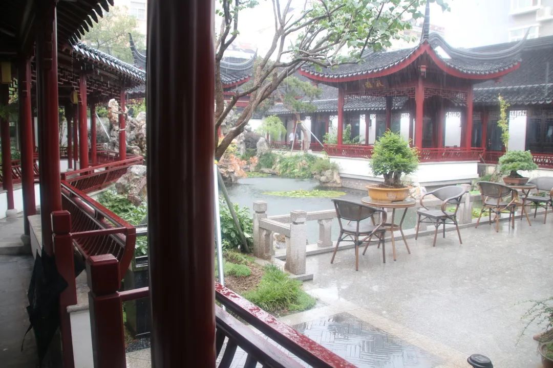 在融洽的气氛中,信得科技公司董事长李朝阳先生和各位嘉宾一道在放鹤园中听雨,品茶,沟通交流,面对此情此景,禾丰食品股份有限公司邱嘉辉总裁情不自禁作诗一首。