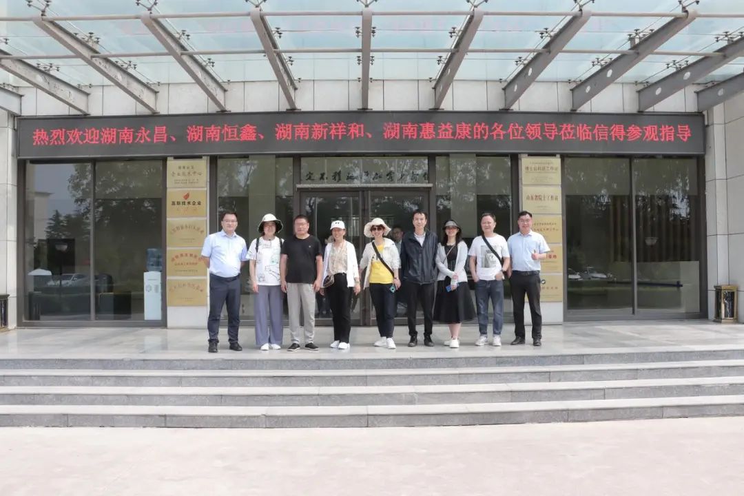 湖南永昌畜牧生态有限公司负责人曹贞元、曹赛琼 ,湖南恒鑫生态农业发展有限公司负责人谌曙辉 、陆宇飞,湖南新祥和农牧农牧发展有限公司负责人王启后、林伟,湖南惠益康农牧科技有限公司业务经理苏丹一行抵达山东诸城,重点参观了香菇多糖提取车间,了解香菇多糖在家畜养殖中的优势作用。