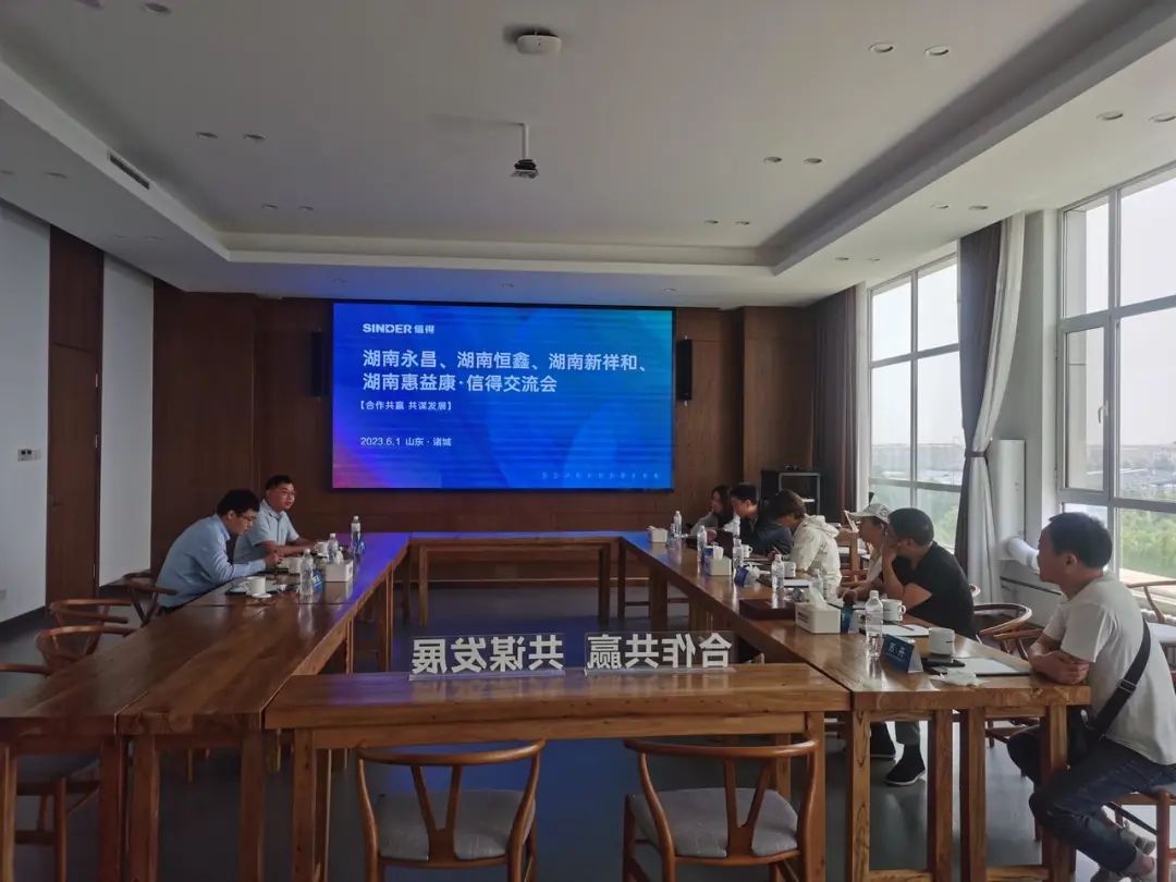 2023年6月1日,湖南惠益康组织湖南永昌、湖南恒鑫、湖南新祥和三家规模猪场客户走进山东信得,深入探讨中兽药在猪场中的使用,尤其是在蓝耳病防控中的应用。