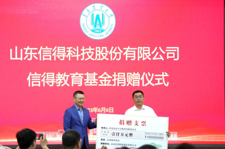 会上,信得科技董事长李朝阳,表达了对母校的感恩之心,并向与会领导、校友介绍了信得积极参与青岛农大教育事业的初衷以及信得近年来与兰州大学、兰州兽医研究所等高校、科研院所合作的情况。李董坦言,信得创立24年,在动保领域持续发展,离不开母校的培养和支持。母校不仅为信得提供专业知识,文化基因,还有校友网络的支持。此次信得向母校捐赠1000万,用于支持学校开展动保产业技术研究,希望青岛农大的各位老师、学生积极参与课题研究,充分借助学校的平台优势和信得的科研资源开展动保产业技术研究。