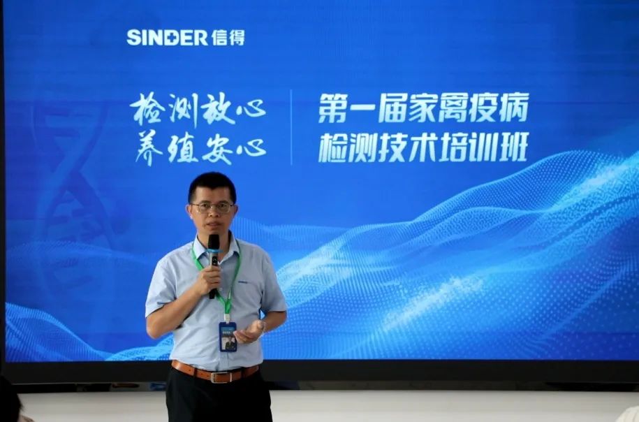 培训课上,信得科技家禽技术服务总监杨天耀博士对各位行业同仁的到来表示热烈欢迎,并简要介绍了信得检测中心的发展情况,杨博士表示,信得检测中心(青岛)按照CNAS认可标准进行实验室设计和建设,设有10个主要功能区,拥有110余台(套)检测设备,2022年检测样本量达到15万份以上,庞大的检测样本量和多年的检测工作,让信得检测中心在家禽疫病检测方面积累了丰富的知识和经验。希望通过这两天的培训契机与各位业界同仁相互学习,共同探索家禽疫病检测的新思路、新方法和新途径,共同为家禽养殖业的健康发展贡献力量。