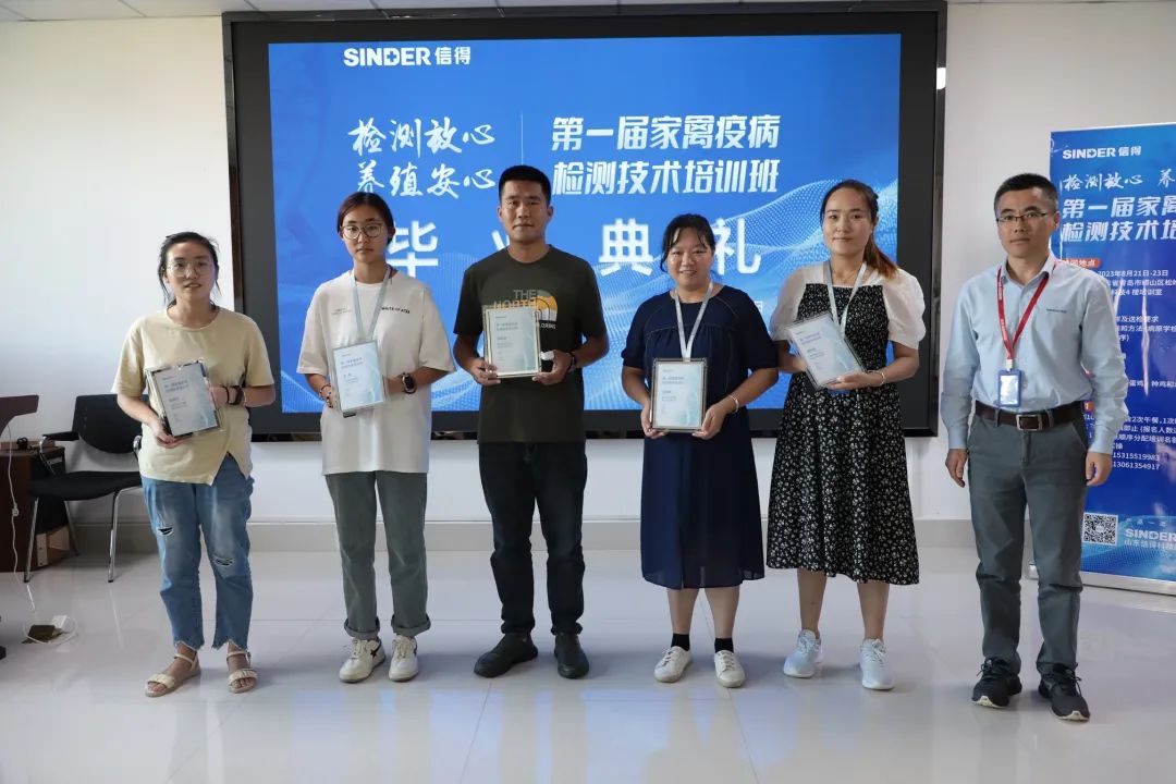 结合检测技术理论考试成绩和现场检测观摩实操表现,全体培训学员顺利完成本次家禽疫病检测技术培训,并荣获结业证书。