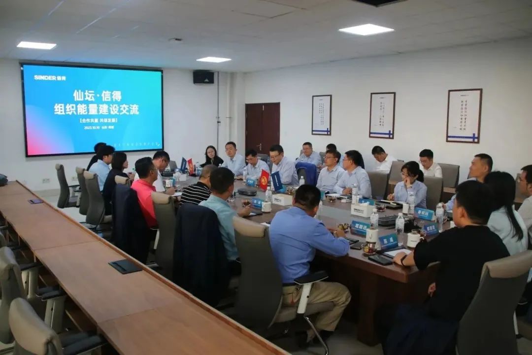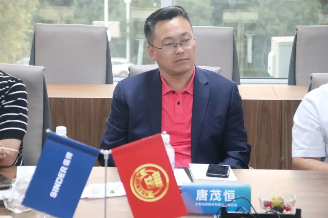 参观结束后,在信得科技董事长李朝阳先生和仙坛股份执行总裁姜建平先生的共同主持下,双方高管进行了坦诚、开放、务实的交流。会上,李朝阳董事长向仙坛股份诸位精英的到访表示热烈欢迎,并就近年来信得的发展策略、管理经验和组织能量建设等方面作重点介绍。李总表示,围绕“产品一流 服务致胜”的发展战略,信得通过研产销的拉通和技术一体化服务,加快推动产品研发,积极推进行业关键技术突破,以产品和服务为抓手支持客户形成精准防控的闭环。