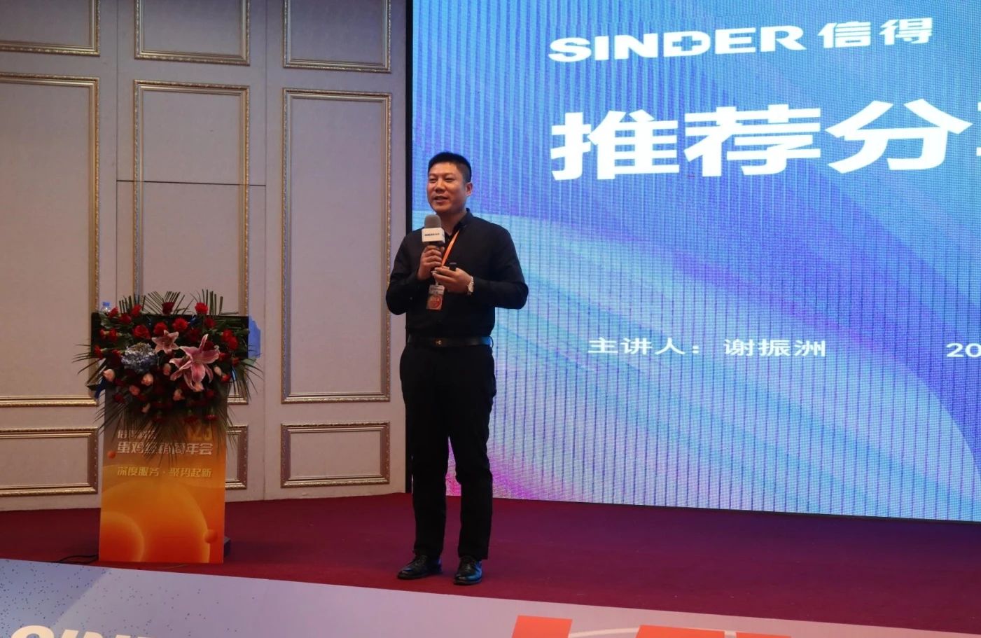 信得坚持向经销商赋能,支持经销商开拓市场,提升竞争力,与广大合作伙伴建立起互利共赢的深度合作关系。为帮助经销商朋友认清蛋鸡产业发展现状,充分了解信得科技的产品优势和服务特色,会上,信得科技销售管理部总经理陈青先生作《蛋鸡综合服务商》的主题报告,陈总从“宏观”、“行业”、“客户”、“竞争”及“自己”五个维度深刻剖析了蛋鸡产业市场状况,重点介绍了信得H5+H7、MS-H和鼻多宝三大产品的亮点以及信得精品防疫队建设情况和养殖技术服务公司发展情况。