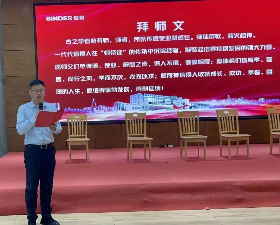 随后,信得科技常务副总裁董涛先生为此次仪式诵读《拜师文》,《拜师文》中提到一代代信得人将在“师带徒”的传承中沉淀经验,凝聚成信得持续发展的强大力量,在师徒传承中,愿师傅们尽传道、授业、解惑之责,诲人不倦,倾囊相授;愿徒弟们扬笃学、善思、尚行之风,学而不厌,孜孜以求。