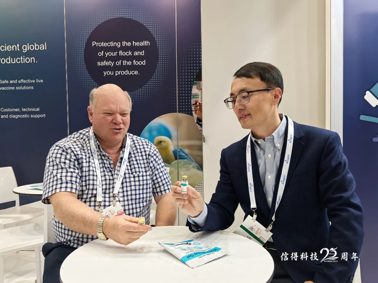 信得科技作为澳大利亚生物资源公司在中国的独家代理,目前代理产品有鸡毒支原体活疫苗(TS-11株)和鸡滑液支原体活疫苗(MS-H株),其中,鸡滑液支原体活疫苗(MS-H株)是中国唯一一款已注册的滑液支原体活疫苗。此次交流参访,双方签订沙门氏菌活疫苗ST的合作协议,再次夯实了信得科技与澳大利亚生物资源公司的合作根基,为信得“致力于动物疾病精准防控,让养殖更健康,食品更安全”的发展使命,注入了强劲动能。