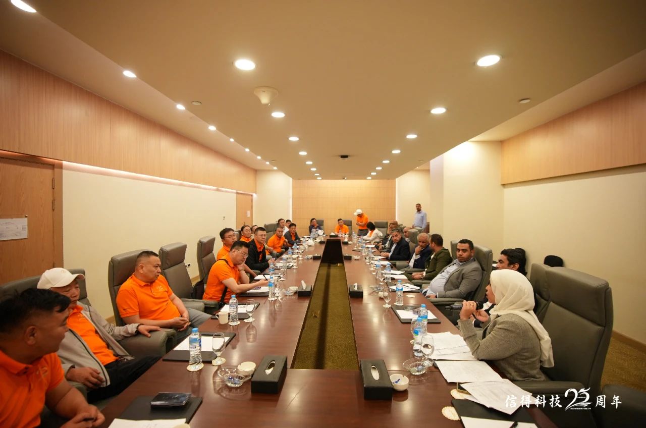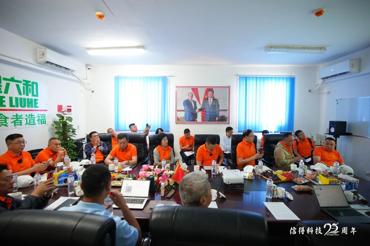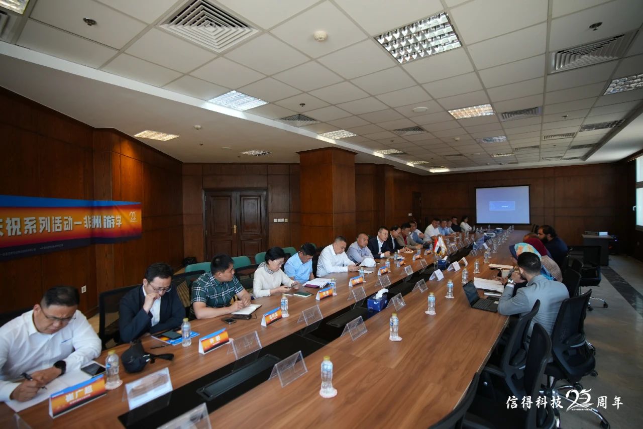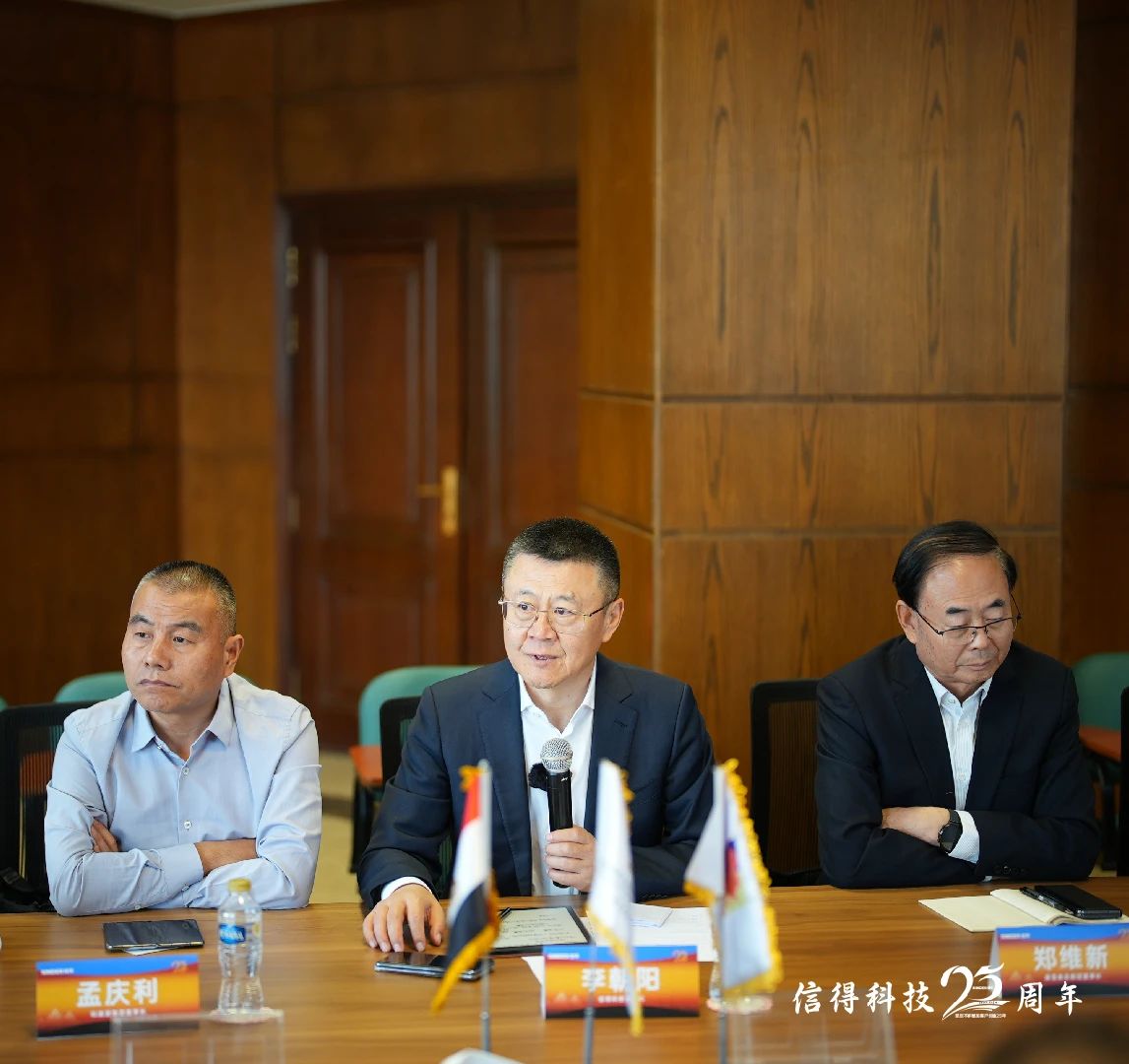 信得科技董事长李朝阳先生对埃及商会联合会领导的热情接待和中肯的投资建议、详尽的市场环境分析表示感谢,并介绍了十六家中国农牧企业的业务板块、经营状况和业务布局。李总表示,中埃两国都是世界文明古国,中埃友谊源远流长,有良好的政治、文化合作基础。中国农牧业经过几十年的发展,在种禽、养殖、屠宰、食品加工等产业链上沉淀了丰富经验和过硬技术。考察中了解到,当前埃及家禽产业发展相当于中国2005年左右水平,在座的中国企业家都经历了从不发达的经济体到相对发达经济体的发展过程,这些发展经验和养殖技术对埃及农牧产业的发展有很大价值。希望今后能与埃及商会联合会保持密切沟通联系,加强合作,促进中埃两国农牧产业的发展和进步。