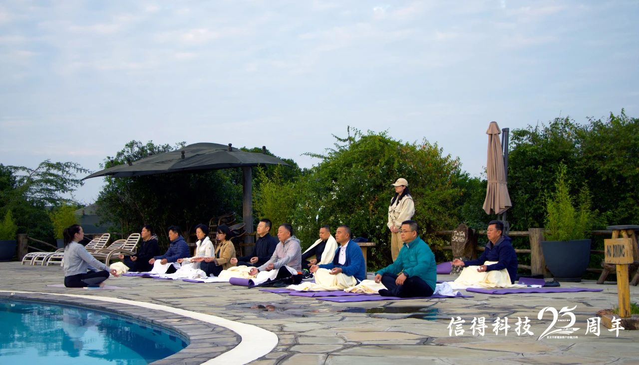 置身在肯尼亚壮美的自然风景中,企业家们远离城市喧嚣,在青山绿水间徜徉,在青草环绕,微风轻抚的自然环境中,给繁杂的生活按下暂停键,进行了一场宁静之地的冥想体验。企业家们身着宽松衣服,席地而坐,闭上双眼,在大自然的抱持中,回归本心,提升心力,链接宇宙能量,收获人生智慧。