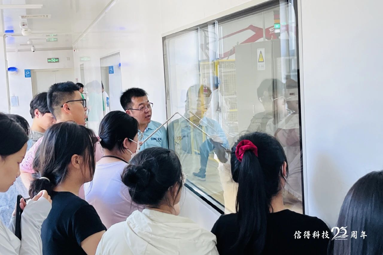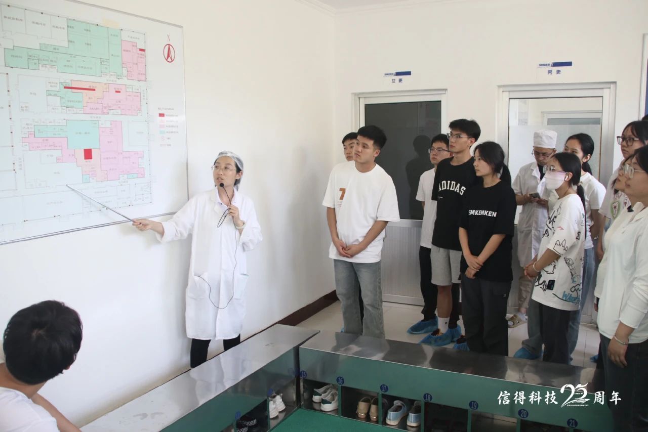 参观过程中,信得科技工艺工程师和技术人才还向师生们详细介绍信得的产品研发、技术创新和市场布局等情况。师生们通过实地考察对信得在动保领域的专业实力和创新能力有了直观了解。