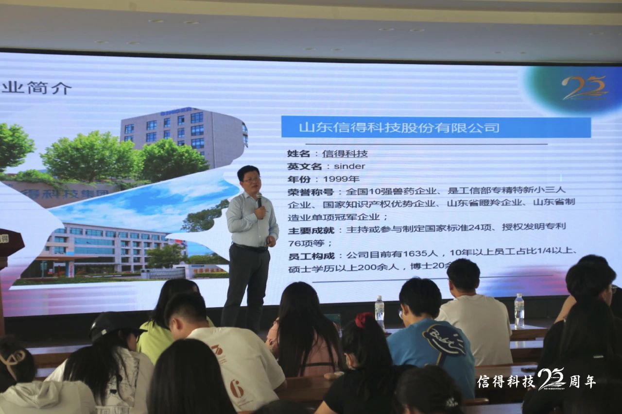 随后,信得科技战略人才官杨树斌先生就信得的企业文化、发展历程、业务模式、校企合作等方面做详细介绍,并向与会师生重点分享信得科技实习岗位。杨总表示,信得长期积极承担社会责任,重视人才交流和高水平应用型人才培养,已与兰州大学、中国农业大学、青岛农业大学等多所国内高等校园开展深度合作。未来信得也将与青岛农业大学海都学院不断深化合作内核,优化合作细节,进一步拓展岗位资源,为毕业生就业保驾护航。