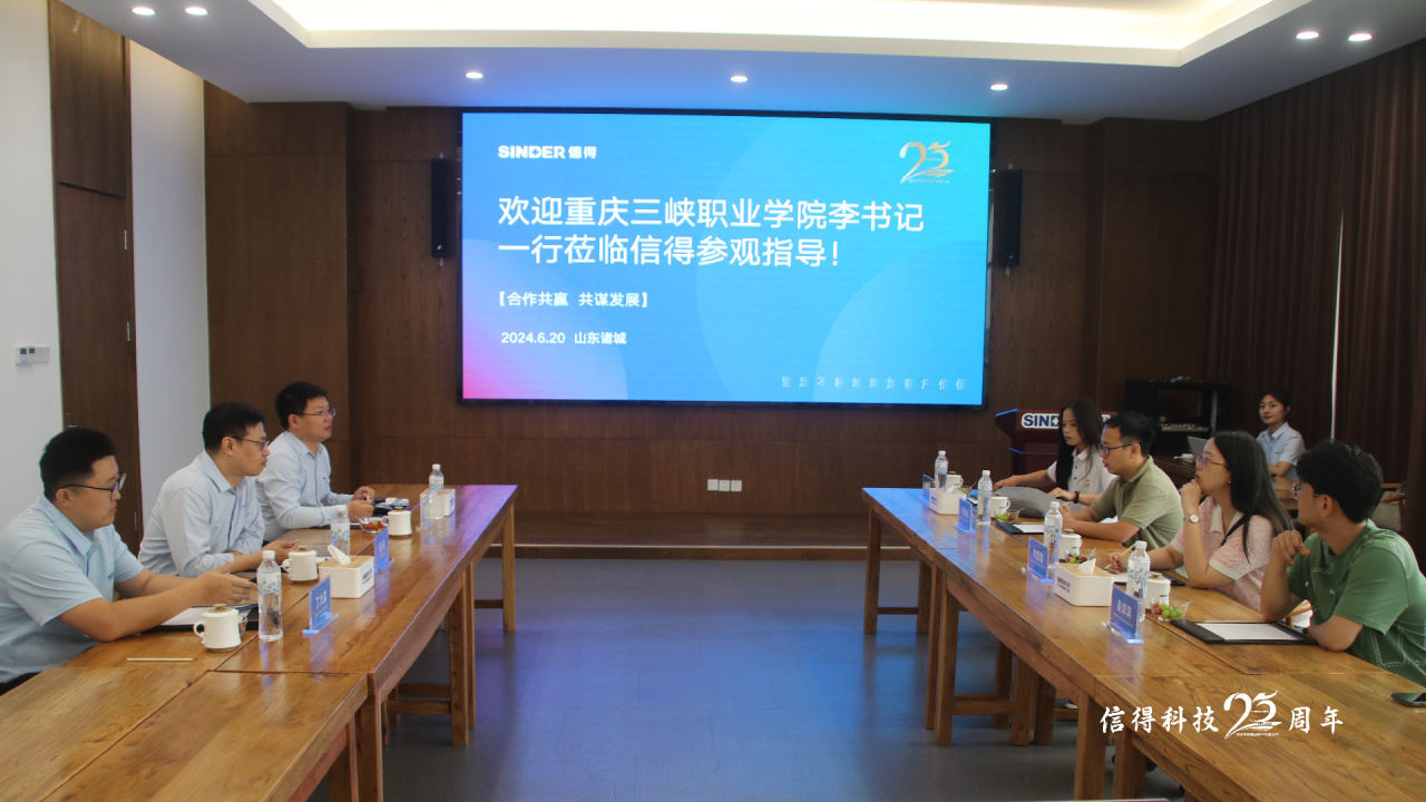 在信得科技文化展厅,公司相关负责人详细介绍了信得科技的发展历程、产业布局、科研创新、人才培养等情况,重庆三峡职业学院的诸位领导充分感受到信得的科研实力和发展前景。