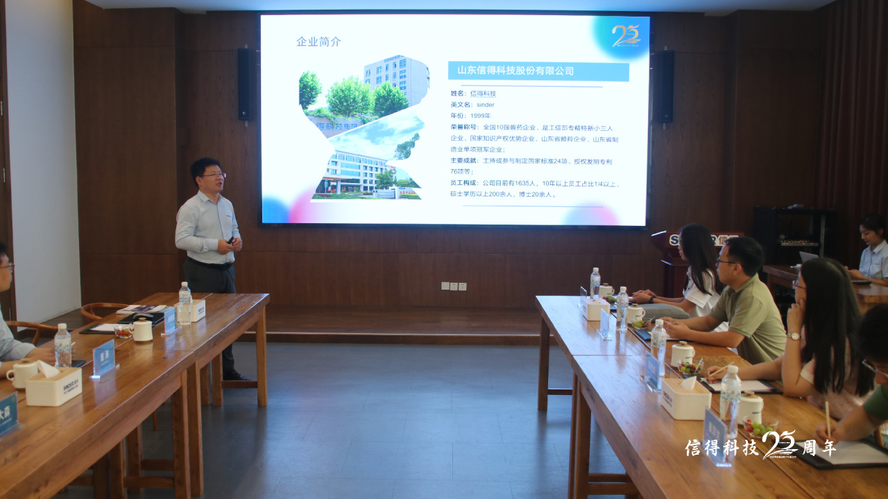 随后,信得科技员工幸福工作委员会秘书长鞠芳玉女士向到访院校领导介绍信得企业文化,信得“利他”、支持员工成长、成才的企业氛围给李书记一行留下深刻印象。