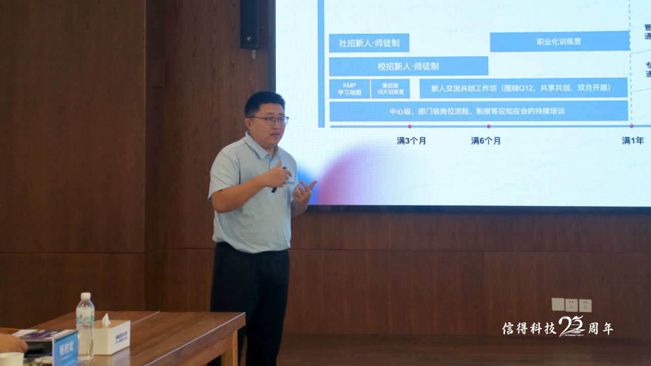 此外,信得科技干部与人才发展部总经理丁大森先生向来访校领导重点讲解了信得的人才培养、晋升渠道、发展规划等内容。他表示,公司将为实习生提供丰富的实践机会和完善的培训体系,支持广大学子快速成长。