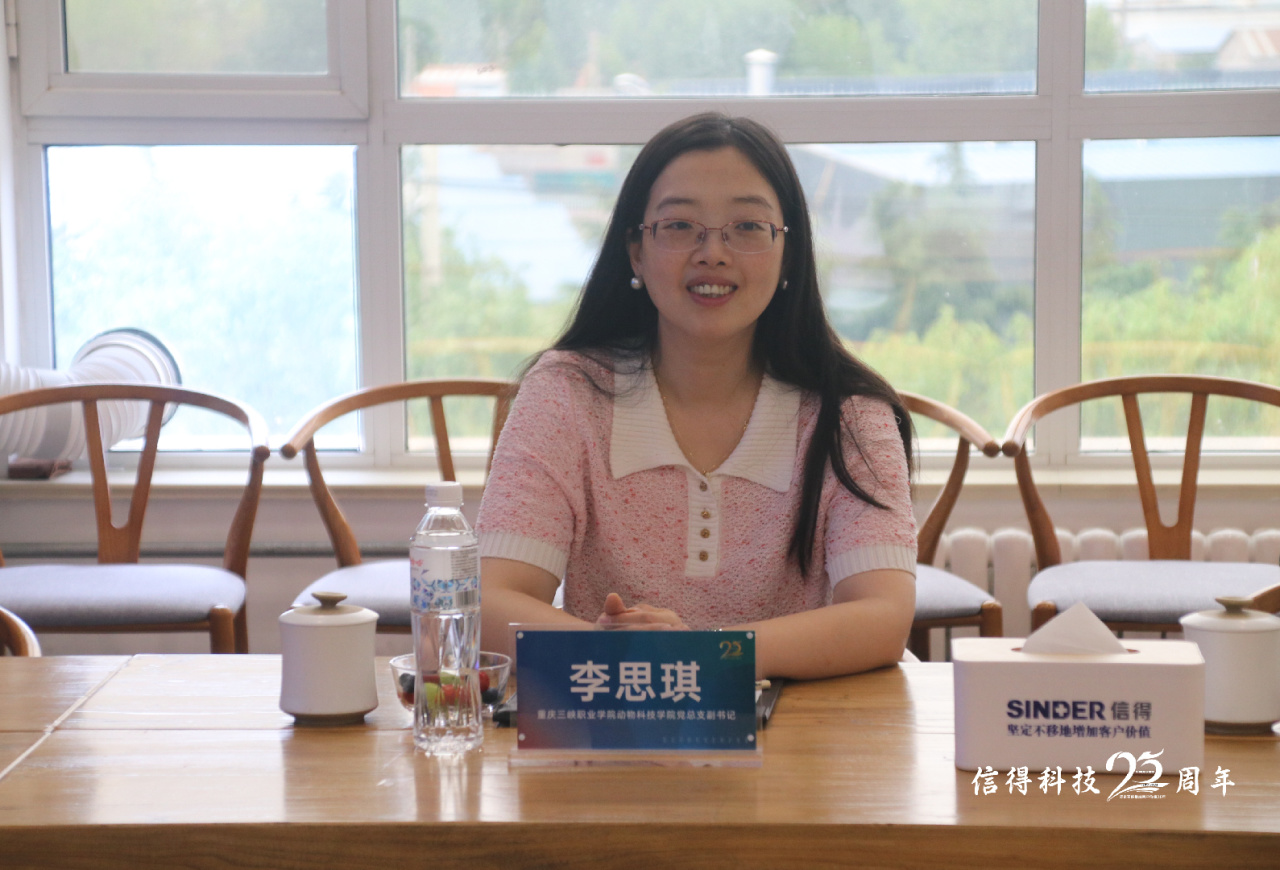 重庆三峡职业学院动物科技学院党总支副书记李思琪女士对学院现状、就业实习、专业建设、产教融合、人才培养等内容做介绍,对学院的发展历史及未来规划做讲解。李书记表示,希望通过彼此的坦诚交流,将企业的运营机制、岗位需求与高等院校的人才培养体系和人才培养目标相结合,通过协调、互动和分享等长期合作模式达到高校人才培养成果与用人单位人才需求的无缝对接。