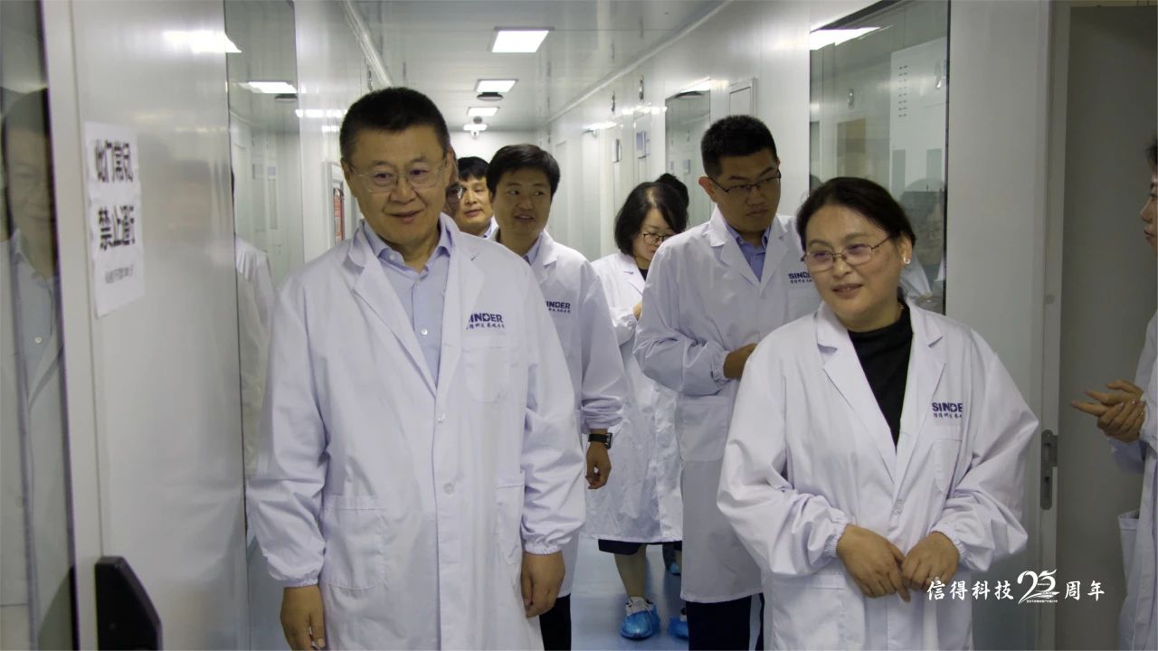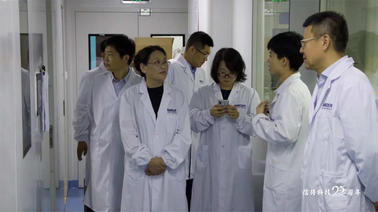 在信得科技公司董事长李朝阳先生陪同下,立华股份沈总一行走进信得科技研发中心、检测中心参观考察。参观过程中,信得科技研发中心项目管理部部长马丽和检测中心王雪博士分别向沈总汇报了信得科技近年来的主要科研项目、疫病检测等方面的工作进展。信得取得的科研成绩和在疫病检测方面的投入给沈总留下深刻印象。