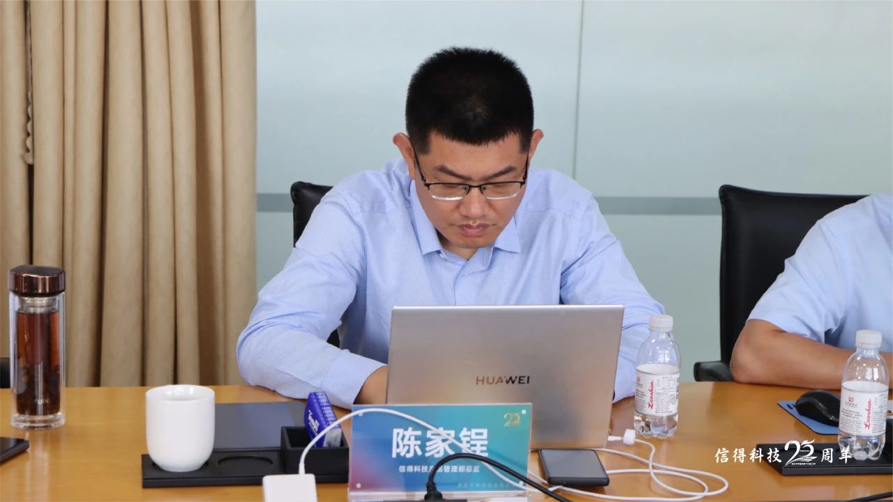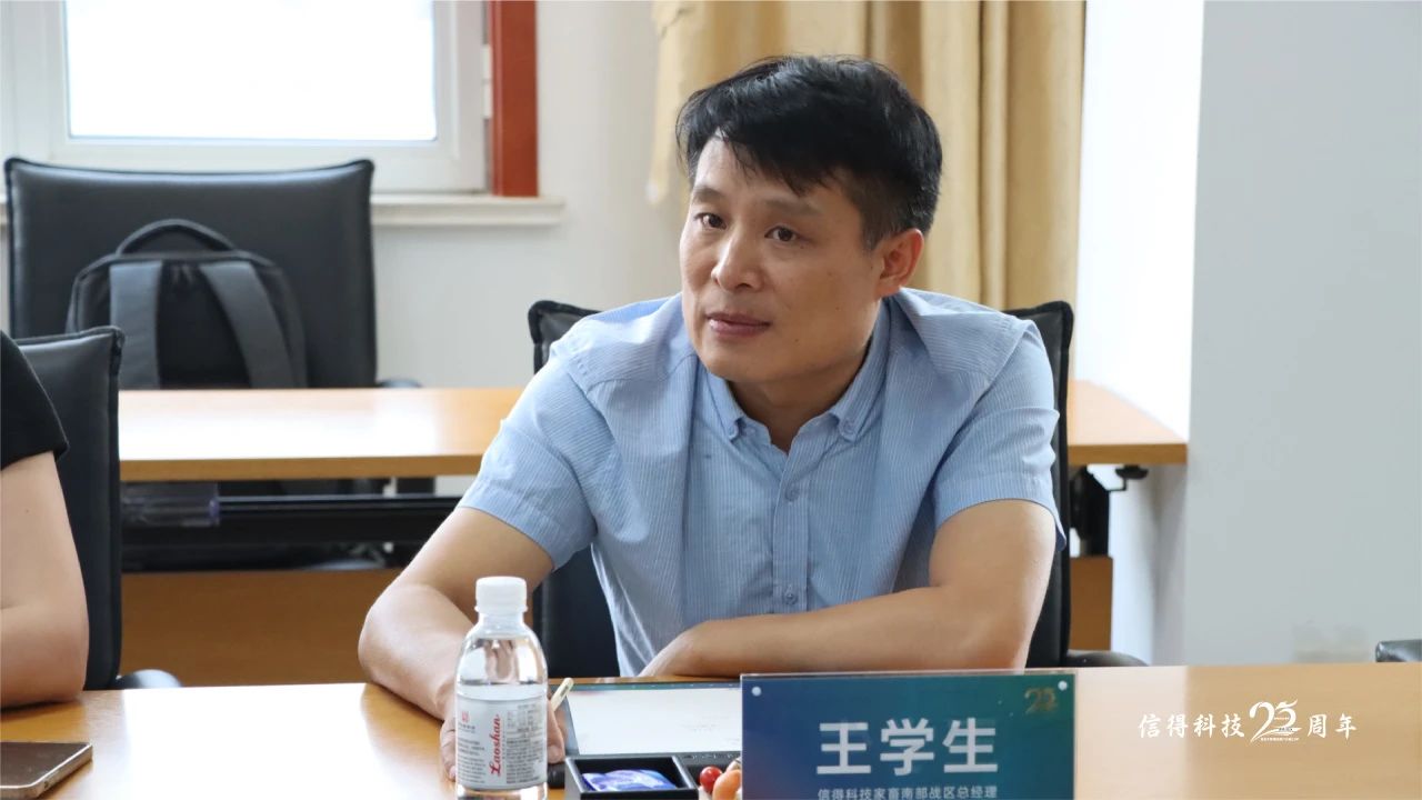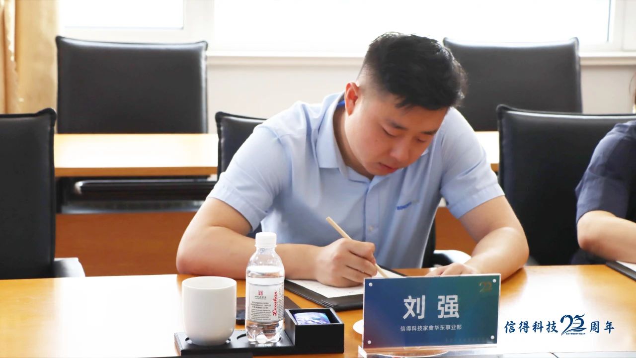 7月3日,江苏立华牧业股份有限公司采购部总经理沈静莅临信得科技青岛公司考察交流,了解项目合作进展,讨论深度合作事宜。