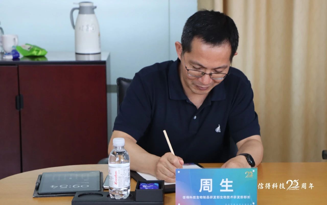 沈总对信得在家禽和家畜领域所做的前瞻研究、数据积累、临床方案和敏捷反应给予充分认可,并对未来双方的技术合作提出指导建议,达成深度合作共识。沈总表示,希望双方通过技术合作、渠道互补等形式,在各自优势领域形成合力,在农牧行业的赛道上携手奋进,为市场和消费者提供更多高质量、高品质的产品。