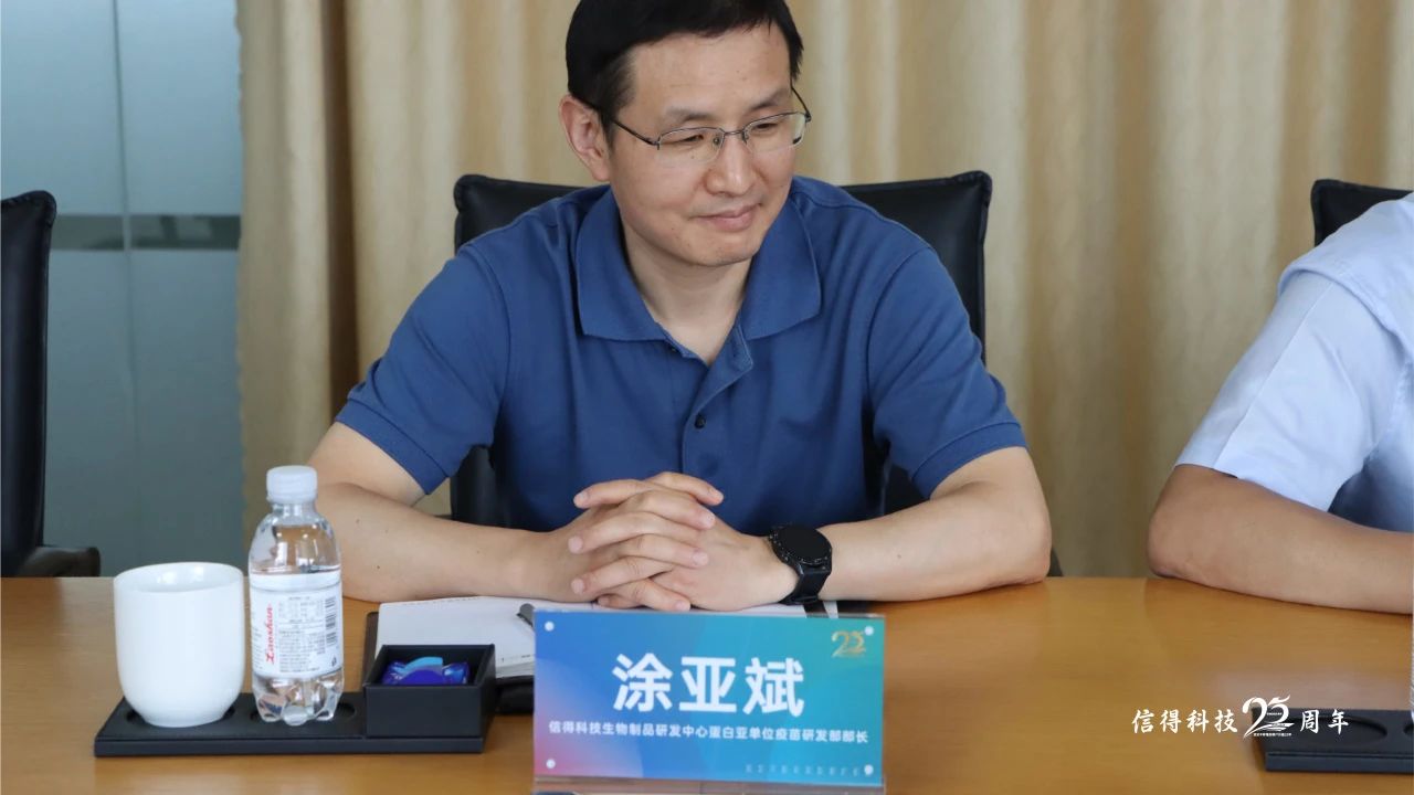 米兰官方网页版董事长李朝阳、研发中心总监宋庆庆博士、家畜产品管理部总监陈家锃博士、家禽产品技术总监杨天耀博士、生物制品研发中心蛋白亚单位疫苗研发部部长涂亚斌博士、生物制品研发部生物技术研发部部长周生博士、检测中心部长刘春国博士、家畜南部战区总经理王学生、家禽华东事业部总经理刘强等信得高管出席接待。