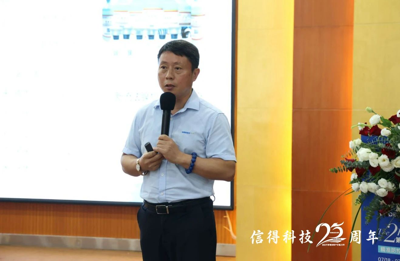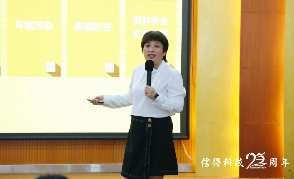 信得科技副总裁闵祥平先生在会议中详细阐述了公司的核心理念和发展规划。闵总强调,信得科技拥有先进的研发实验室和一流的生产线,致力于为客户提供优质的产品和技术服务。未来,信得科技将持续科研创新,完善精准防控解决方案,推动蛋鸡养殖健康发展。