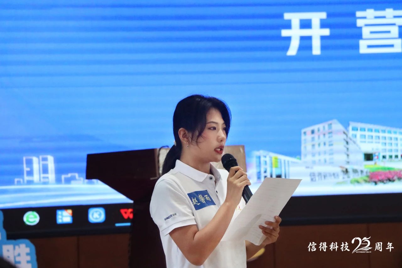 开营仪式上,学员代表王博永和赵馨雨,分享自己站在新起点、踏上新旅程的切身感受及未来个人成长的规划。两位学员纷纷表示,面对新身份与新环境,自己将积极拥抱变化,展现青年担当;坚持终身学习,树立正气品格,明辨是非曲直;将个人成长融入企业发展、社会进步的浪潮,为信得的发展添砖加瓦、贡献强劲力量。