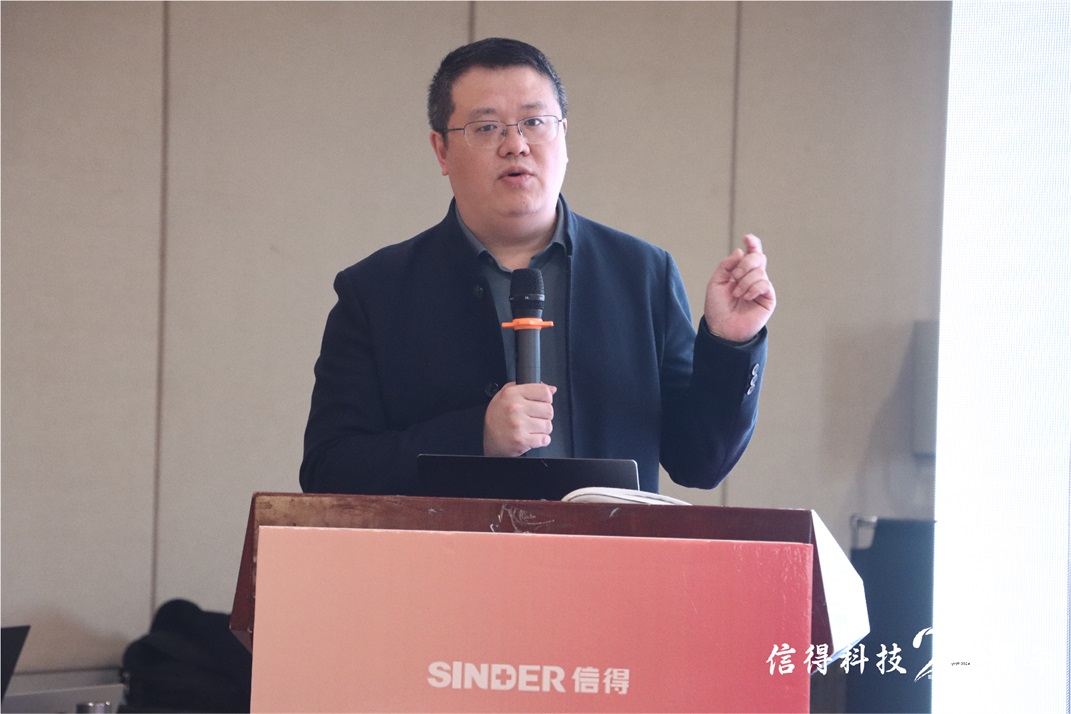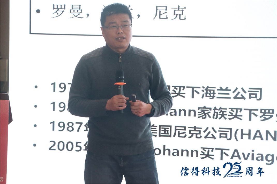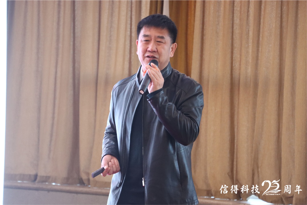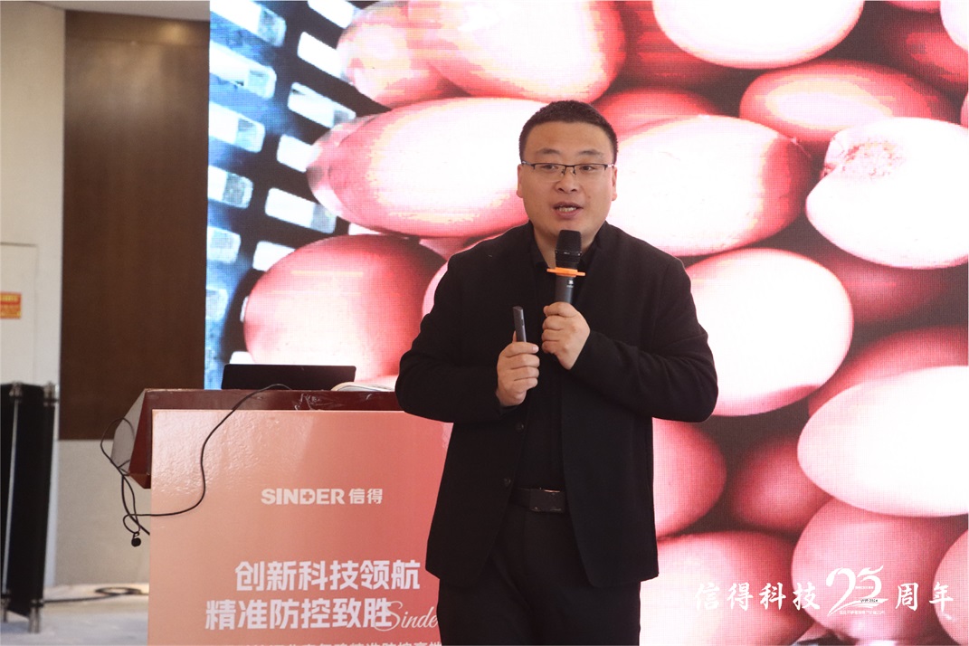 会上,信得科技副总裁闵祥平先生向与会嘉宾详细介绍了信得成立二十五年来的发展情况,闵总表示,信得成立以来一直专注于动保业务,已发展为产品线齐全处于市场头部的高科技企业。目前,在山东、北京、四川建有六个生产基地,三十九条生产线全部通过新版兽药GMP验收。闵总强调,信得始终立足“坚定不移地增加客户价值”的原则,支持客户精准防控、提升养殖效益和质量。