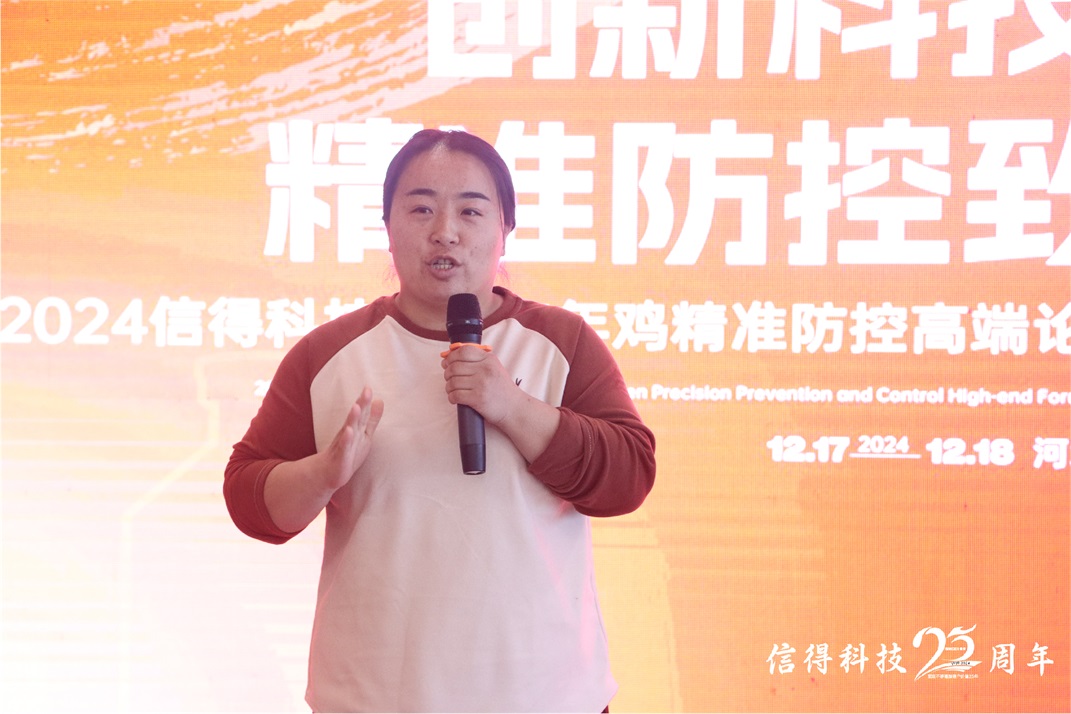 MS和免疫性抑制疾病是导致蛋鸡难养的根本性问题,鸡免疫抑制性疾病可引起免疫系统受损,使免疫功能下降,给养殖户造成一定的经济损失。会上,信得科技蛋鸡技术专家石子虎讲解了蛋鸡免疫抑制病的有效防控方案,并分享了信得在青年鸡的胃肠道保健,腺病毒和法氏囊防控、腺肌胃炎防控、滑液囊净化、传支全防卫及健康跟踪的精准防控方案。