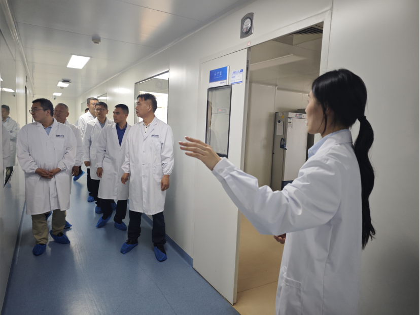 交流的首站是对信得研发中心和检测中心的参观。协会一行首先来到2楼和5楼的研发中心,这里汇聚了众多先进的研发设备与专业的科研团队。在研发人员的详细讲解下,协会成员们深入了解到信得在蛋业相关产品研发上的创新思路与技术突破。从新型饲料添加剂的研发,到疫病防控技术的探索,每一个环节都彰显着信得对技术创新的执着追求。随后,众人来到6楼检测中心,这里严格的生物安全防控措施给大家留下了深刻印象。规范的操作流程、精密的检测仪器,确保了每一项检测结果的准确性与可靠性,为产品质量和生物安全筑起了坚实的防线。
