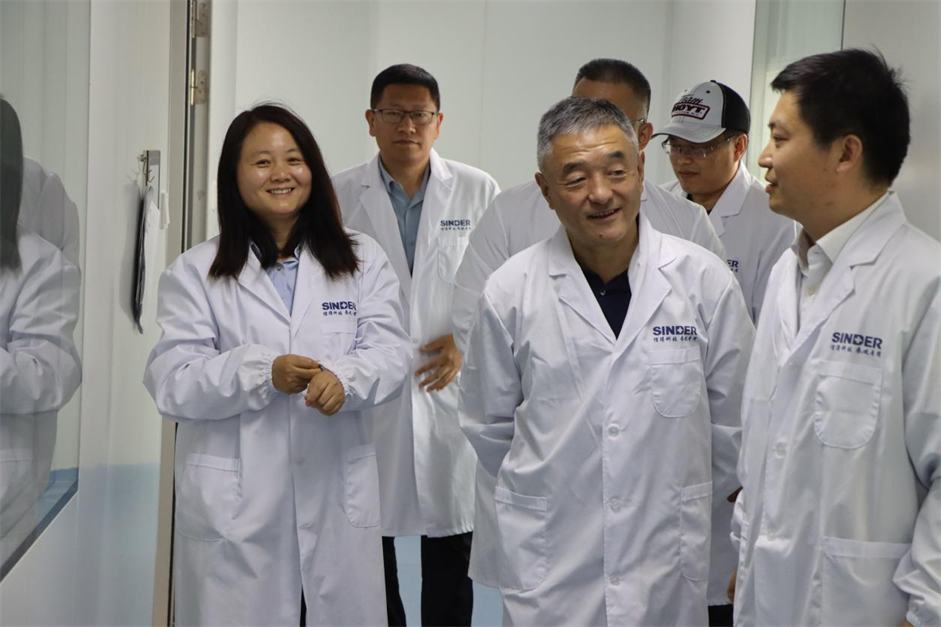 魏晓明董事长,王学强副总经理和周鹏程总经理先后参观了信得科技研发中心和检测中心,信得研发中心总监宋庆庆博士及所到部门的业务骨干向魏总、王总和周总重点介绍了信得的人才梯队,技术平台,资源投入,项目成果、疫病检测流程等方面情况,多方位展示了信得近年来在产品研发和疫病流调方面的能力和成果。