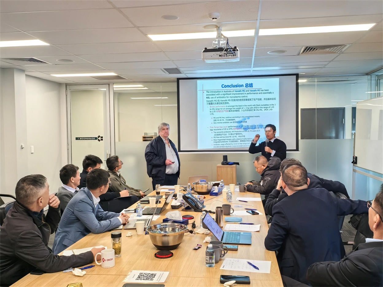 此次游学活动,诸位中国农牧业精英受到澳大利亚生物资源公司的热烈欢迎和热情接待。澳大利亚生物资源公司执行主席安东尼(Anthony)、总监戴维(David)、全球技术经理克里斯(Chris)博士和罗宾(Robbin)博士、全球销售经理菲利普(Philip)、澳大利亚生物资源公司悉尼工厂负责人马修(Matthew Heslop)等高级管理人员出席接待,在愉快的氛围中,双方就家禽养殖技术、疫病防控等方面展开交流讨论,增进了互信、凝聚了共识。