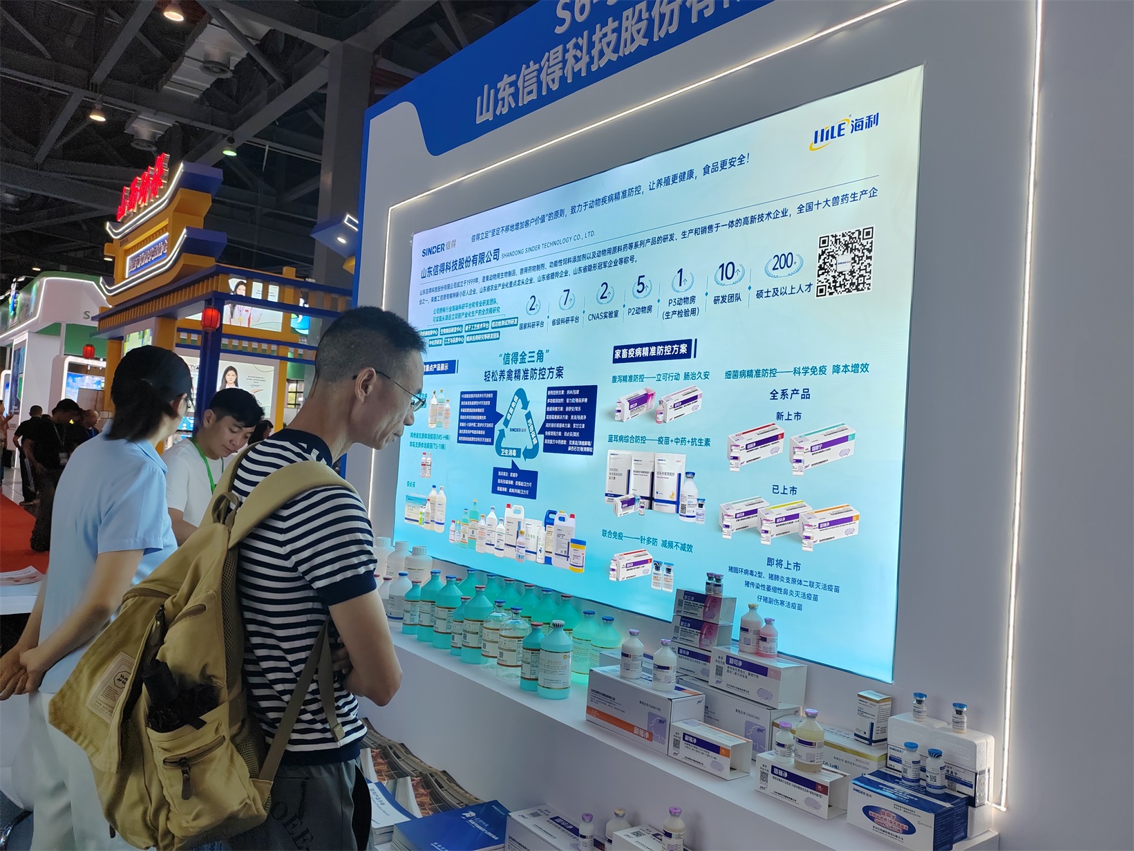 作为山东省农业产业化重点龙头企业、山东省瞪羚企业、山东省隐形冠军企业,信得科技以山东展团成员身份亮相此次盛会,向参展企业和行业同仁展示了山东省兽药企业的创新成果与技术实力。此次展会,信得科技精心筹备,集中展示了一系列当前重点疾病的精准防控方案:家禽流感方案、免疫抑制病方案、家畜腹泻方案、蓝耳方案等,为参展行业同仁全方位展示了信得方案的应用场景和临床价值,吸引众多业内人士和观众驻足咨询了解。展位日均接待量超三百余人次,有力推动山东动保产业在全国范围内的影响力。