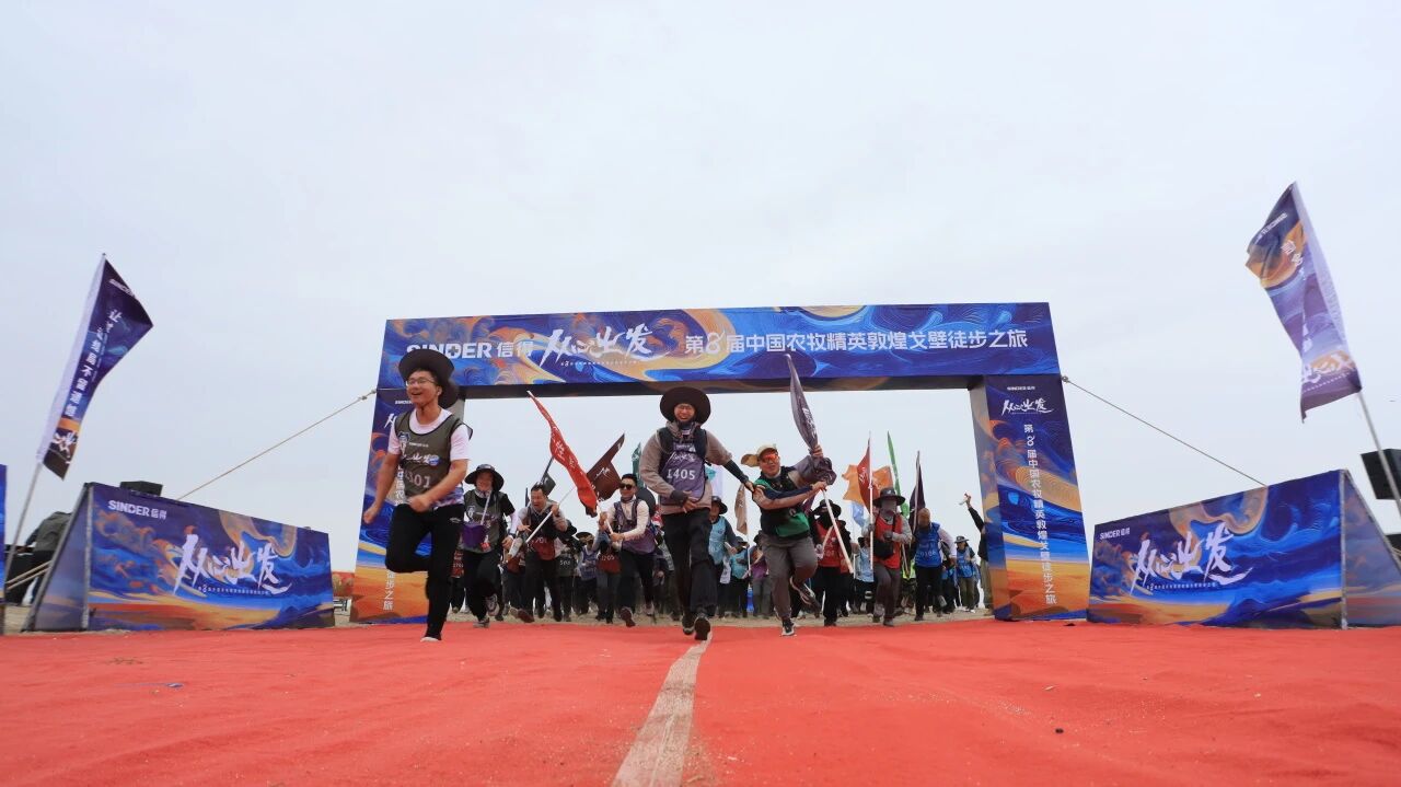 战鼓擂动,旌旗飞扬! 随着出征的号角响彻大漠,17支战队的旗手奋力奔向前方,拉开了第八届中国农牧精英戈壁徒步之旅的序幕。戈友们向承载着千年文明的戈壁腹地进发,重走玄奘之路,于大漠孤烟、长河落日的苍茫中,开启了一场遇见更好自己的修行。