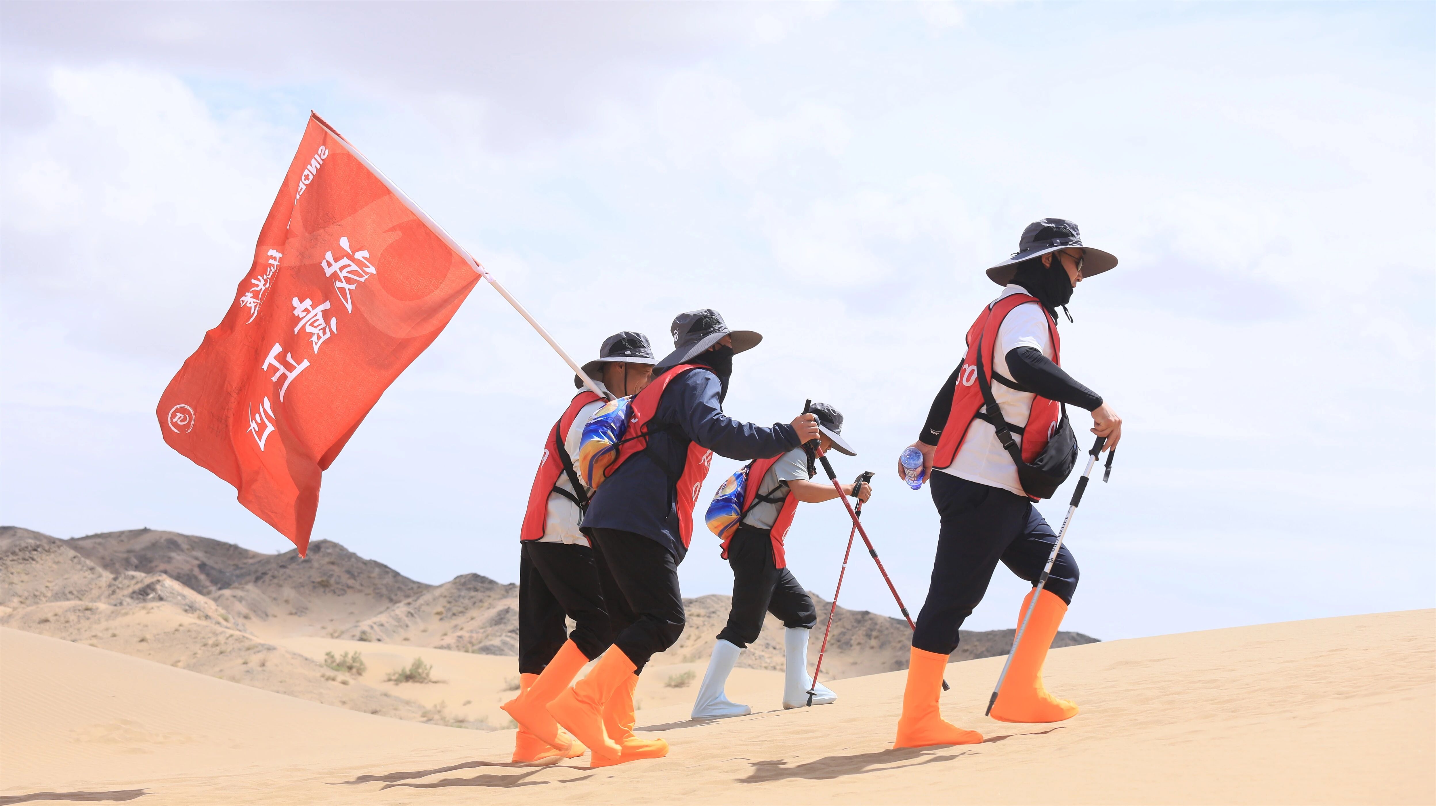 为凝聚团队向心力,徒步中特别设计了团队挑战环节。在“明心鼓”项目中,各队默契配合、同心击鼓;而随后的“同路同心”项目,则成为本届戈壁最艰苦、也最动人心魄的篇章。