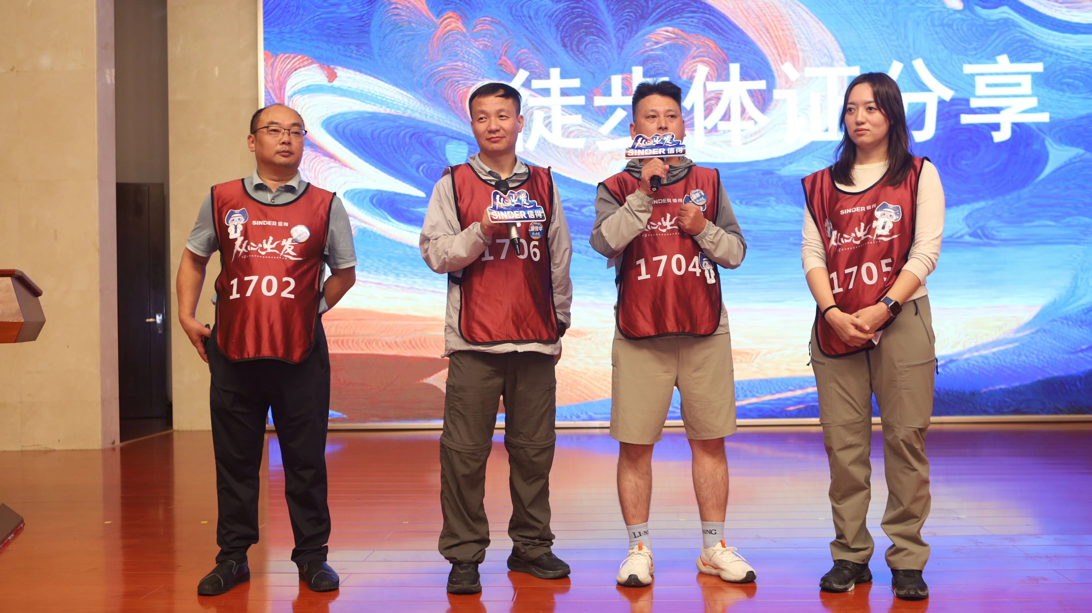 徒步结束后,颁奖晚宴隆重举行。全体戈友高声合唱《歌唱祖国》,激昂的歌声在晚宴现场回荡,大家挥舞着旗帜,脸上洋溢着自豪与兴奋,将活动推向了又一个高潮。