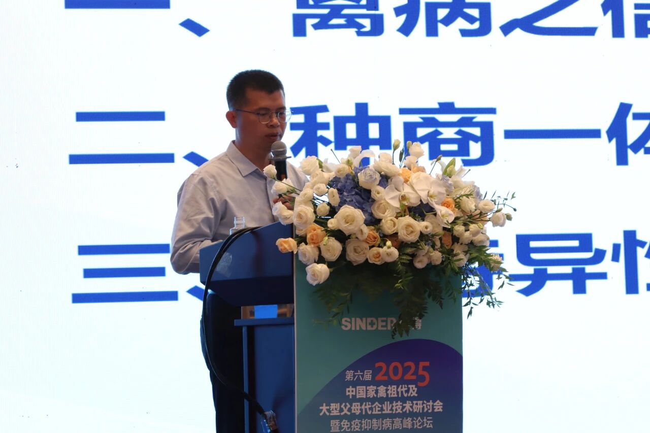 刘玉良研究员作“我国种禽场’两白一支’检测及净化"的主题报告。他指出,通过持续多年的系统监测和净化实践,我国种禽场禽白血病净化工作取得初步成效,净化品系生产性能持续改善,但鸡白痢和支原体仍面临较大的净化压力。他建议行业同仁长期坚持疫病净化,并加强野毒与疫苗毒鉴别、生物安全防控及多品系分群管理,以提高养殖质量和效益。