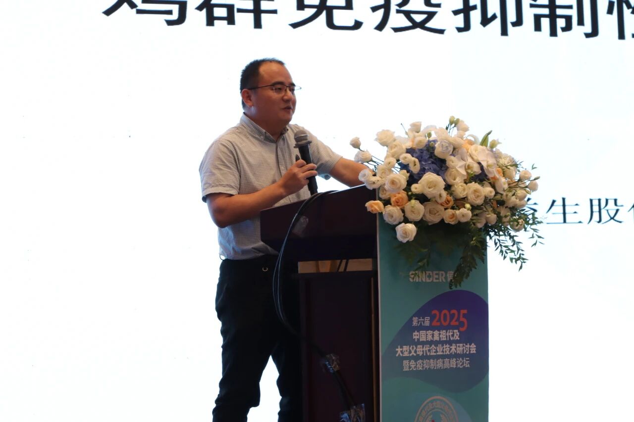 郭龙宗院长就益生股份的“鸡群免疫抑制性疾病的防控实践”进行深度分享。他指出,免疫抑制性疾病作为家禽养殖业的沉默的杀手”,疫病防控需从种源净化、生物安全等维度入手,建立覆盖“意识-措施-技术”的生物安全体系。