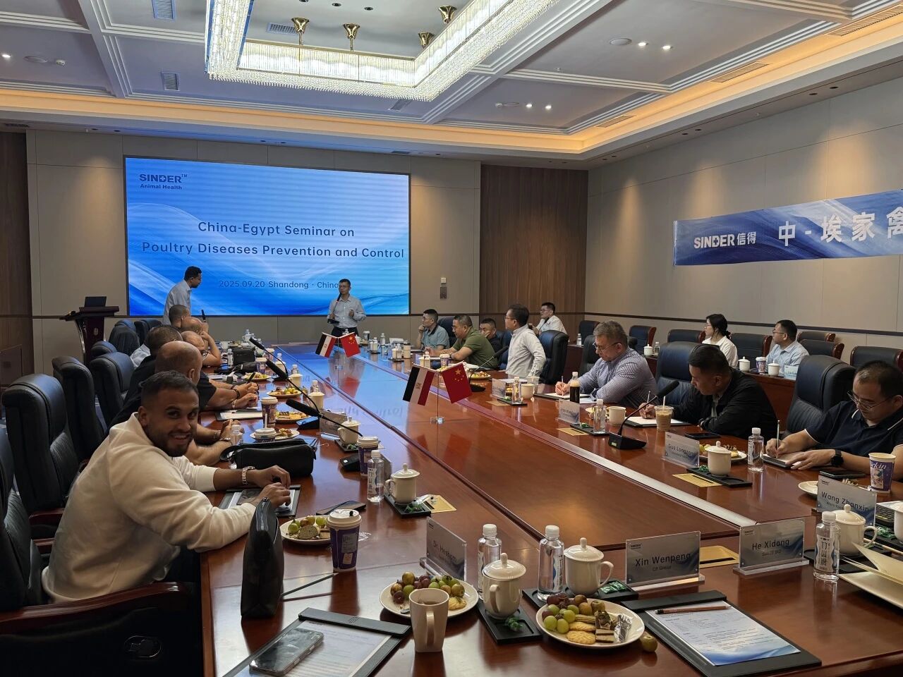论坛召开前夕,埃及家禽行业代表团一行莅临信得科技公司参观交流。代表团先后参观了信得科技青岛研发中心、诸城工业园、山东信得动物疫苗有限公司和山东海利生物制品有限公司,深入了解信得科技在疫病防控、种源净化等方面的创新成果与实践经验。双方还围绕家禽免疫抑制性疾病防控、生物安全体系建设、养殖成本控制及海外投资机遇等议题进行了务实交流。双方将携手探索行业可持续发展的全新路径,共同推动中埃两国在家禽养殖领域的经验共享与技术协作。