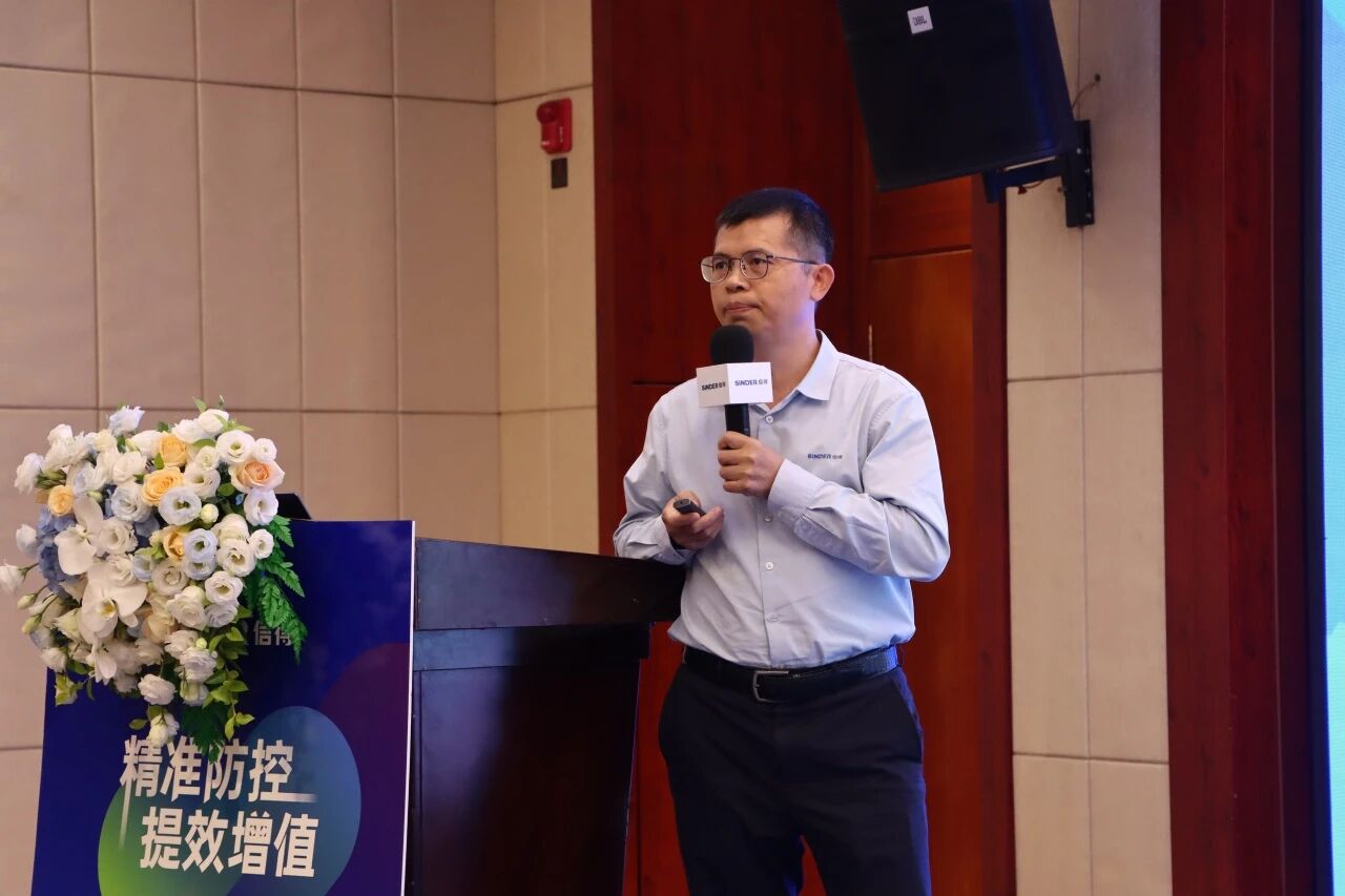 闵祥平副总裁在致辞中向各位来宾表示热烈欢迎,并以“精准防控支持养殖业高效率成长”为主题,系统阐释了信得精准防控理念及其价值。他表示,精准防控通过精准检测、精准定制、精准评价 “三位一体” 的闭环管理,可掌握疾病的病因、病原、流行趋势和发病规律,从而通过定制化的解决方案,实现养殖过程中关键疾病的精准控制,为客户带来确定性的最佳价值,提升养殖效益。闵总强调,信得将围绕 “精准防控”“最佳价值”“确定性”“有效率” 四个关键词,持续为客户提供有效率的确定性最佳价值,助力国鸡行业同仁提效增值。