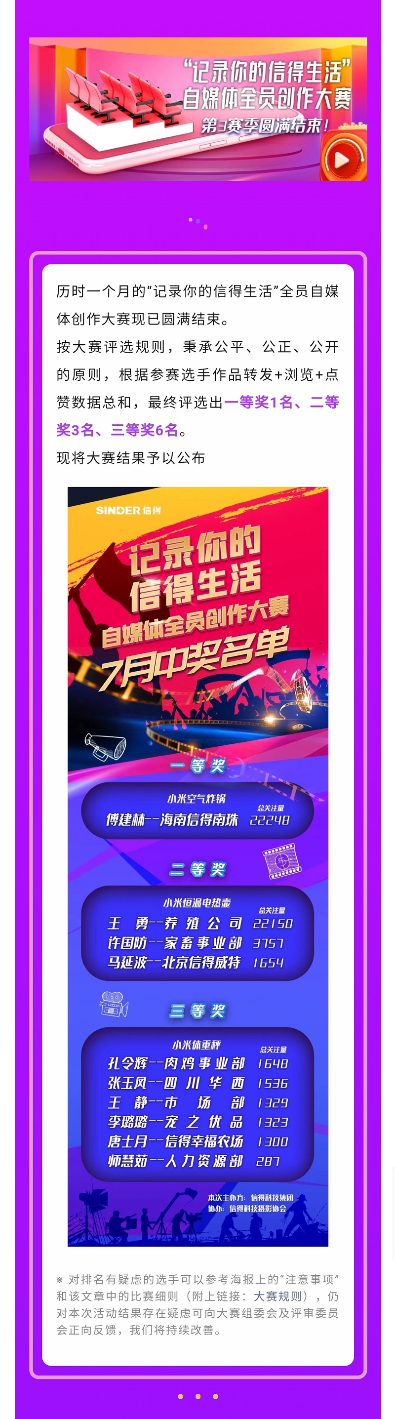 公众号链接:7月信得视频大赛圆满结束,新赛季全面升级