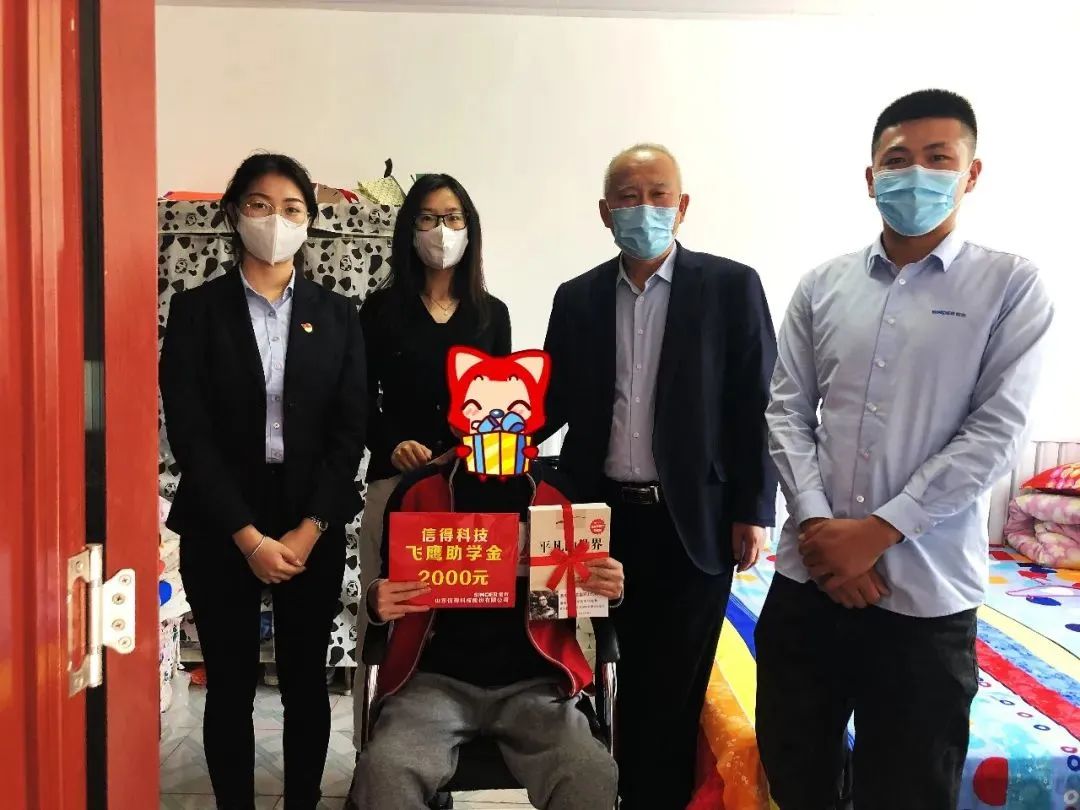 2022年5月1日,米兰官方网页版携手共青团诸城市委开展了“2022年信得科技飞鹰助力救助金”发放活动,本次活动采取入户走访发放的形式,团市委和公司代表一同深入我市各乡镇和街区,共为10名高中生发放助学金,帮助学生解决求学困难的问题。