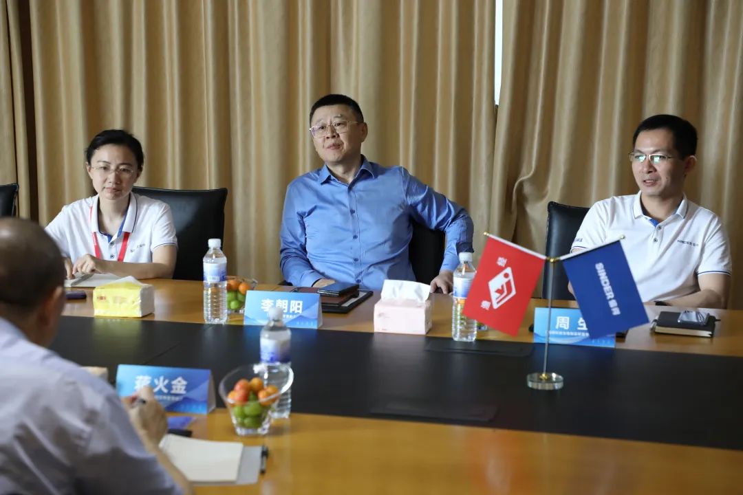 随后,蒋火金董事长与李朝阳董事长及信得科技公司部分高管进行了座谈。会上,大家针对当前水产行业的实际问题坦诚交流、经验共享,技术互通,形成了共同推动水产行业绿色健康发展的共识。