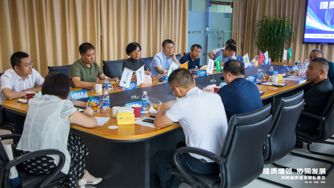 与会诸位农牧企业家围绕肉鸭产业的选苗育种、健康养殖、生产加工、宣传推广等方面进行了深入探讨和坦诚沟通,会议讨论成立非盈利机构“肉鸭产业高质量发展促进会”,并就“促进会”的宗旨、愿景及下一步具体的工作方向达成共识。