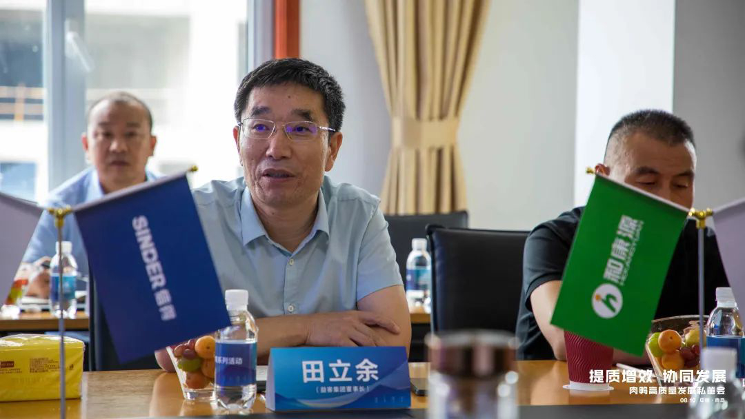作为肉鸭高质量发展私董会的主要发起人益客集团董事长田立余先生强调,中国肉鸭产业从育种、饲料、加工、消费等各个环节都有很大的提升空间,中国农牧企业要协同发展,在提升育苗质量、养殖环境、加工水平、消费引导等方面形成合力,为消费者提供更健康、更绿色的肉鸭产品,推动肉鸭产业的良性发展。