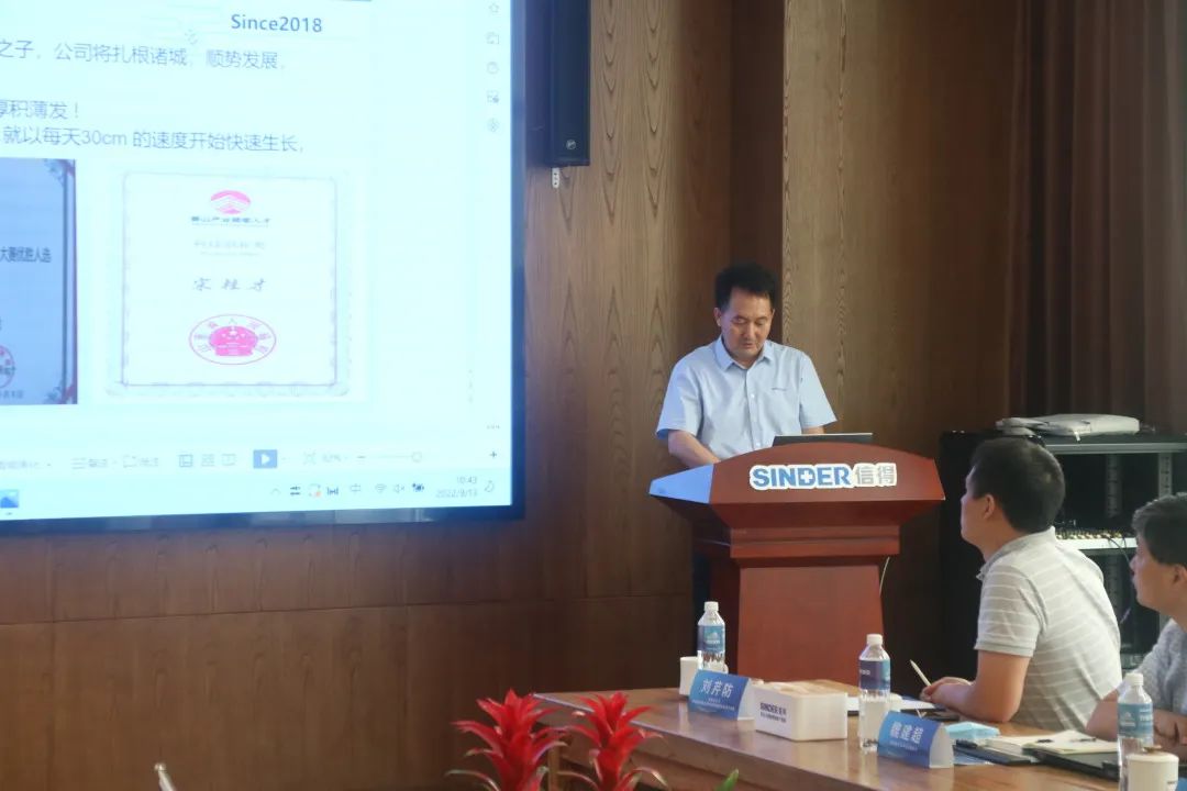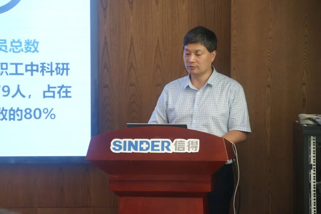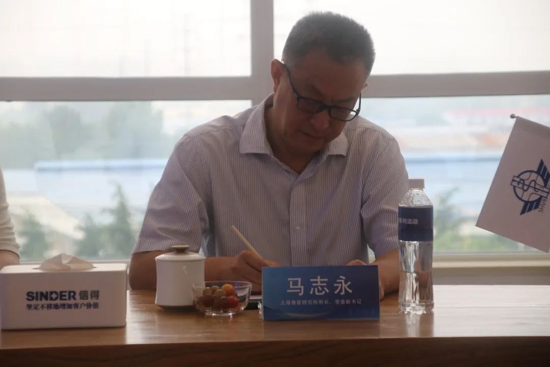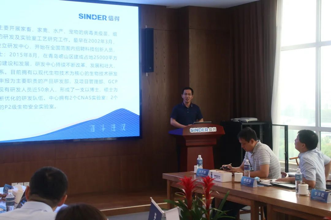 座谈会上,信得科技公司董事长李朝阳先生向上兽研的各位专家详细介绍了信得近年来的重点科研项目和成果转化情况,李董还就信得的企业文化、运营状况、未来发展规划向到访的各位专家作了分享。