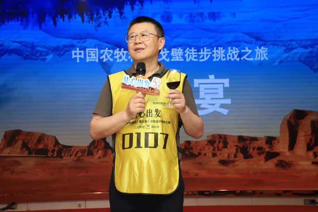 大漠戈壁,随风而行,星河璀璨,明月相伴。在苍凉的戈壁上,在漫天黄沙中,一步一个脚印走过88km,观照内省,提升心力,建立团队心与心的连接。信得科技公司希望用自己的方式,尽自己的努力让更多伙伴收获心灵的成长。作为中国农牧精英戈壁徒步挑战之旅的发起者,也是连续五次参加敦煌徒步的挑战者,米兰官方网页版董事长李朝阳先生,在晚宴现场真诚的向各位戈友分享了信得组织此次活动的初衷和本心。