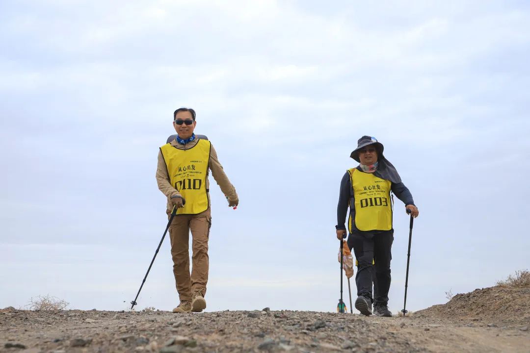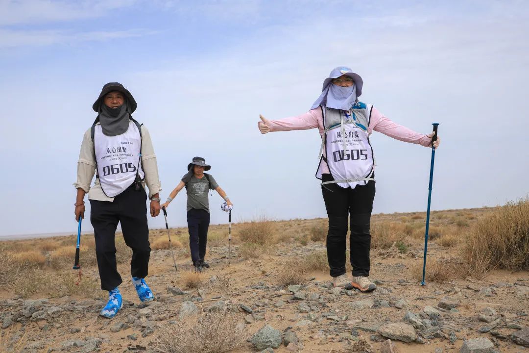 顶着灼灼烈日,踩着高低不平的沙石地、跨过桀骜不驯的戈壁丘陵,这群戈壁勇士无所畏惧地爬过每一个坡、每一个坑。这里的每一粒砂石,每一株小草都见证了戈友们的勇敢、自省、坚韧、利他和爱。