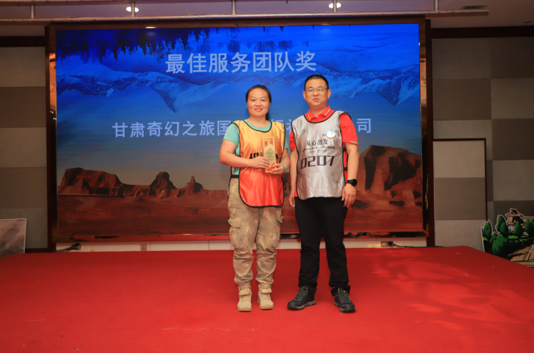 在此次的徒步挑战中,不止有为了团队荣誉砥砺同行的勇士,还有一路为大家带来暖心服务的楷模。今晚的荣誉同样属于他们,感谢甘肃奇幻之旅团队的辛苦付出,你们让这徒步戈壁的旅程充满了家的温度。
