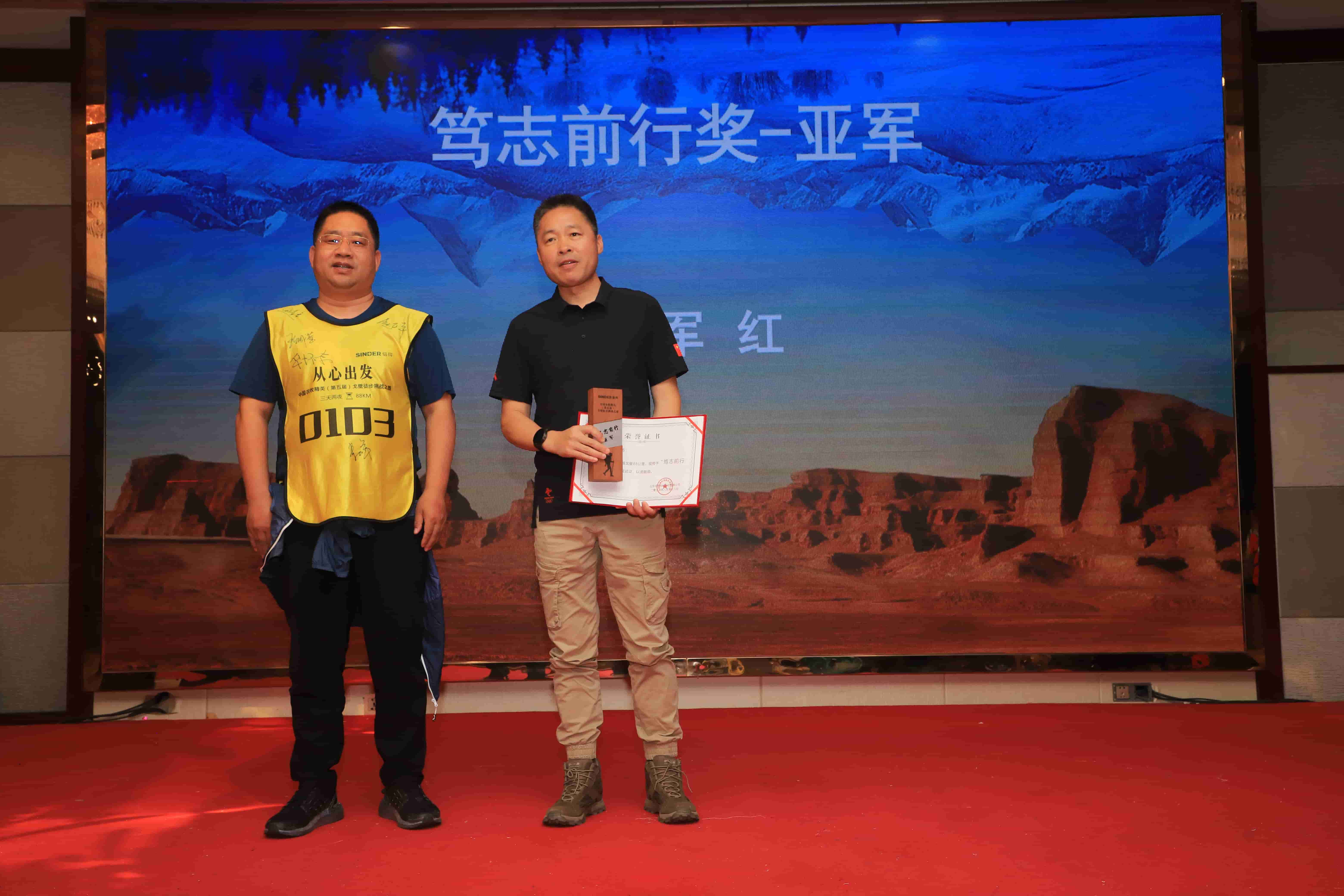 此次徒步的个人奖包含了“诚意正心”奖、“勇者无畏”奖、“最佳巾帼”奖、“最酷戈友”奖和“笃志前行”奖五大奖项。在各位队友、各位同伴的掌声和欢呼声中获奖嘉宾上台领取荣誉。