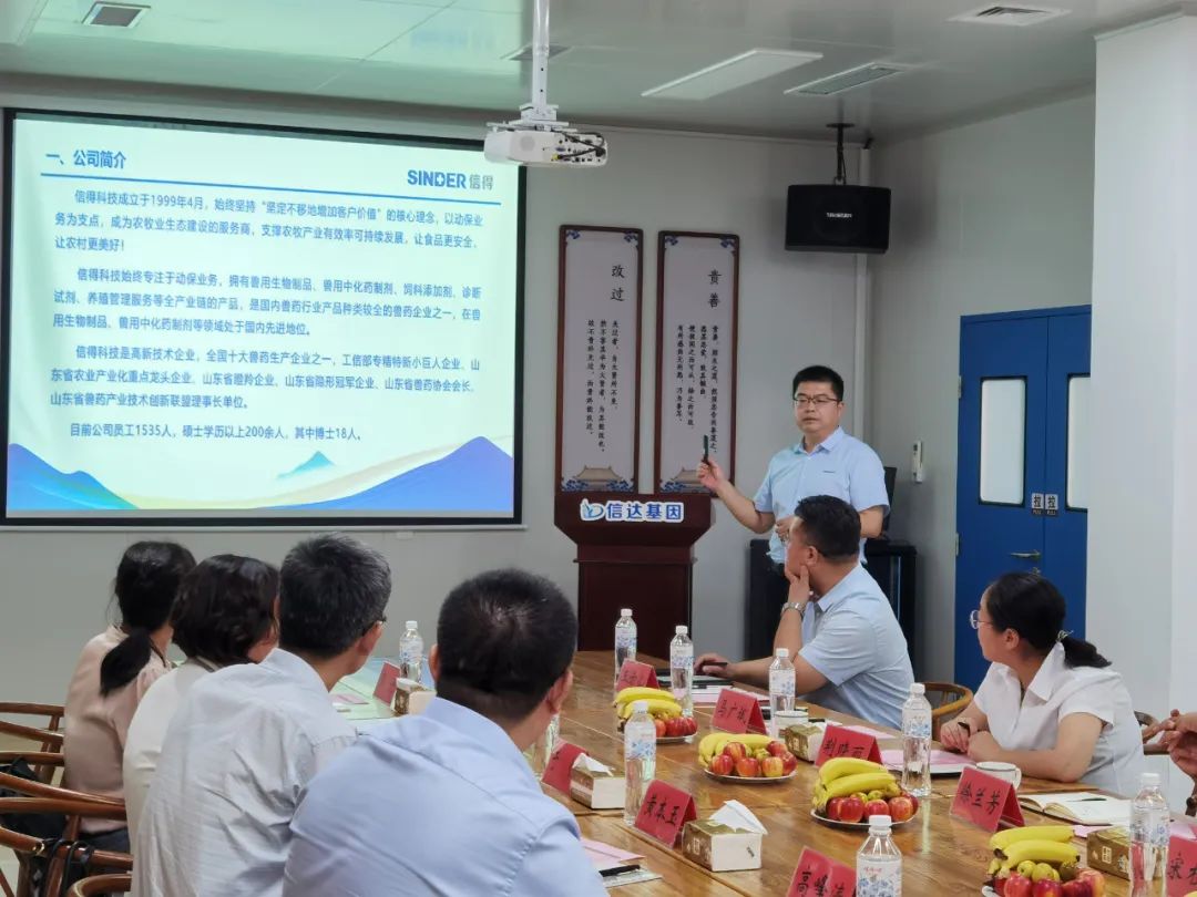 马总首先对各位领导和老师的到来表示欢迎,感谢一直以来对公司的支持,并向与会嘉宾详细介绍了信得科技和信达基因的基本情况。作为高新技术企业,信得科技始终专注于动保业务,拥有兽用生物制品、兽用中化药制剂、饲料添加剂、诊断试剂、养殖管理服务等全产业链的产品,是国内兽药行业产品种类较全的兽药企业之一,在兽用生物制品、兽用中化药制剂等领域处于国内先进地位,始终坚持“坚定不移地增加客户价值”的核心理念,以动保业务为支点,成为农牧业生态建设的服务商,支撑农牧产业有效率可持续发展。信达基因作为信得科技的控股子公司,建有分子生物学诊断试剂和免疫学诊断试剂GMP两条生产线,并通过了 IS09001质量管理体系认证。现有检测试剂产品和仪器数十个品类,涵盖家畜、家禽、水产、宠物、反刍动物等多个领域,可广泛应用于基层养殖场疫病的快速诊断,政府机构、规模化养殖集团的疫病监测,饲料加工及畜禽产品加工企业的食品安全检测,并着重介绍了公司在一流产品打造方面取得的成绩和进展。希望通过此次签约,促进校企合作,互惠互利,实现双赢。