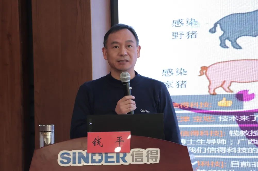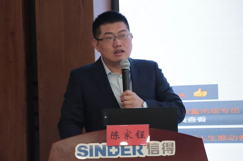 信得科技家畜技术总监陈家锃带来产品一流工作进展及2023年推广方案内容汇报,陈总详细展示说明基于目前打造净蓝防非的技术解决方案以及需求的产品改进工作、产品一流的评价体系建设、未来2-3年新产品的研发进展与推广布局。陈总表示将通过持续努力,共同打造信得品牌,共同完成坚定不移地增加客户价值核心理念,切实帮助客户解决问题,实现价值。