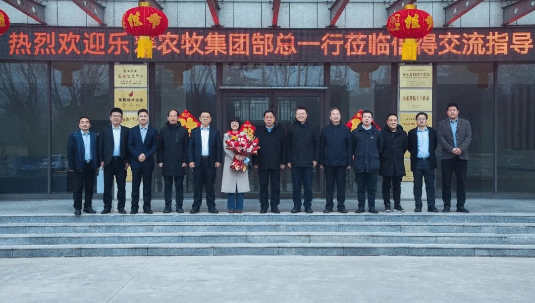 2023年2月7日,乐寿农牧·信得科技交流会在山东信得科技公司诸城工业园顺利举行。乐寿农牧集团董事长郜希君、副董事长李便允、养殖技术总监崔德福、养殖技术经理胡海峰、人力资源部长曹振朝、肉食生产中心人力资源部经理陈巍一行六人莅临信得参观指导,讨论深度合作事宜。